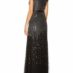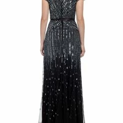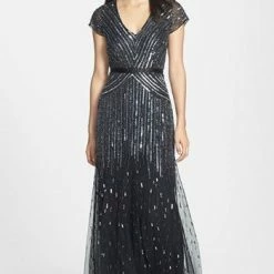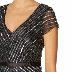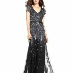 Set the glam benchmark with this Adrianna Papell creation. Intricate beading and megawatt sequins dovetail into one elegant black-tie look.