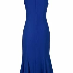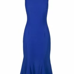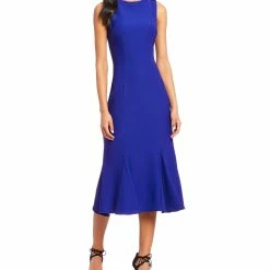 Deceptively simple, this sleeveless dress radiates sophistication and feminine style. Inspired by the timeless sheath, the hemline lendS this fitted dress a sensational fluted finish and a form-flattering touch. Tailored in our mid-weight ribbed fabrication, this midi dress is designed to remain pristine for all your day through night events, just add towering heels.