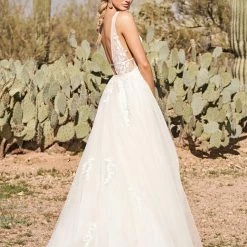 A high neck sweeps to the back with a dramatic silk chiffon tie on this sleek sleeveless evening gown that flatters with gathered silk through the waist and soaring side slits. Â Neck tie can be tied in the front, back, or left loose – as shown in the different photos.