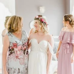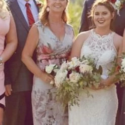 - Back zip with hook-and-eye closure