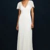 Catherine Deane Karla is a dreamy sheath gown with scalloped lace detailing along with illusion neckline and hem. This gown comes to us in good condition from a designer boutique. Catherine Deane Karla is Ivory/Champagne in color.