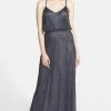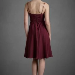Flattering on variety of body types, silk and a fine metal chain form the double straps that suspend this generously ruffled, swingy A-line silhouette. This dress is a lovely berry color. Â