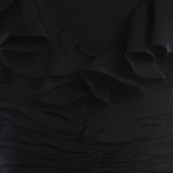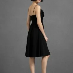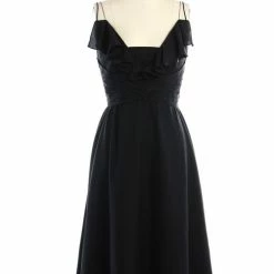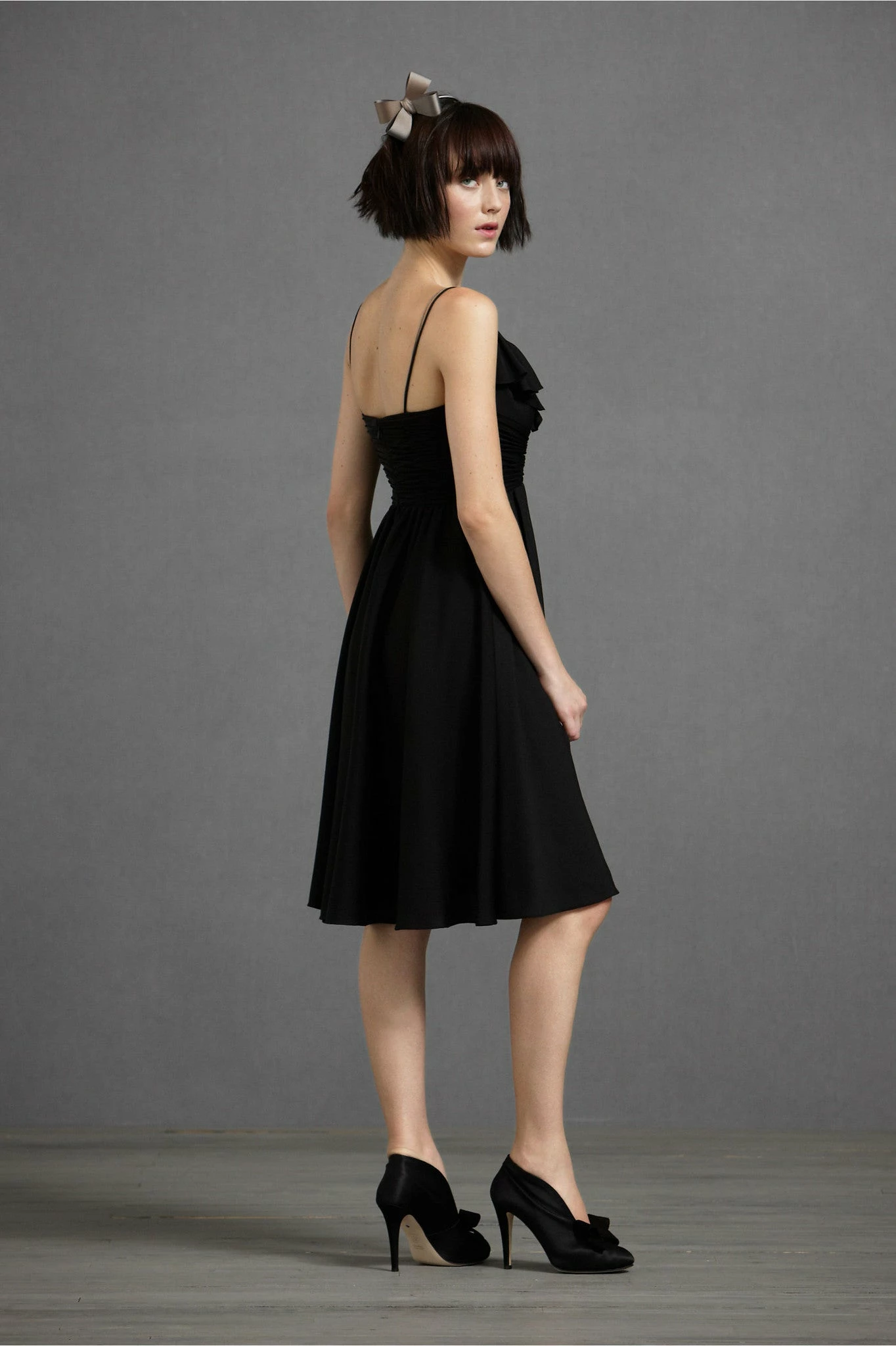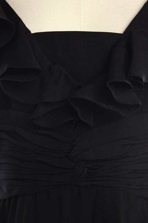 Flattering on variety of body types, silk and a fine metal chain form the double straps that suspend this generously ruffled, swingy A-line silhouette.