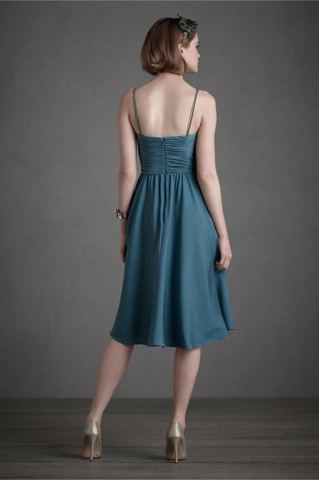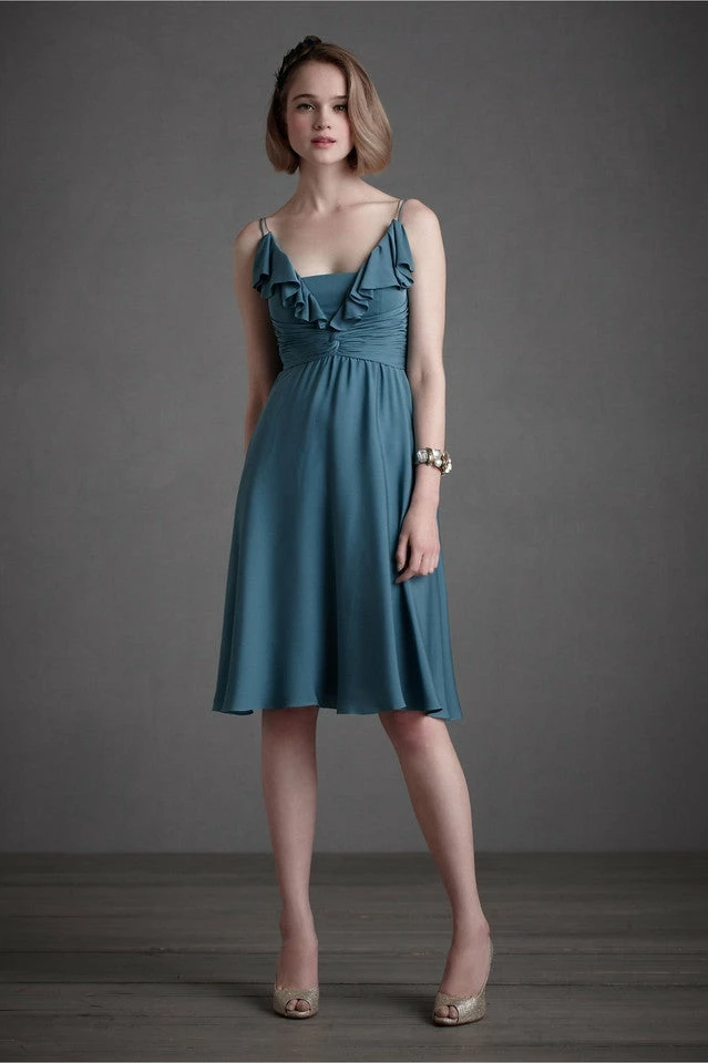 Flattering on variety of body types, silk and a fine metal chain form the double straps that suspend this generously ruffled, swingy A-line silhouette.
