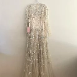 Size 4 and 12. This dress has been tried on in store, but appears to be in like-new condition. Very minor loose thread on the dress. Please note, I have two size 12 dresses – one of them does not have the inner size label. Retail price: $1,250!