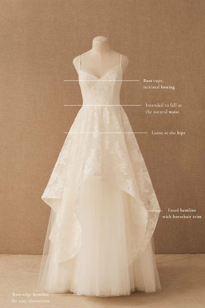 - Not bra friendly; additional bust support can be added by an expert bridal tailor