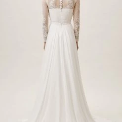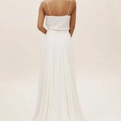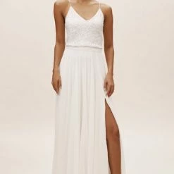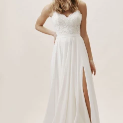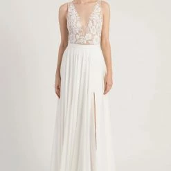 Crafted from airy chiffon, this A-line skirt has a sultry slit; we love it paired with a feminine lace topper. By Jenny Yoo.