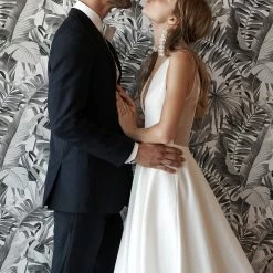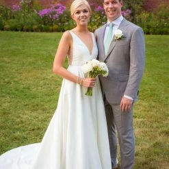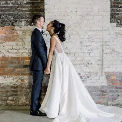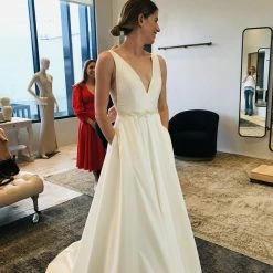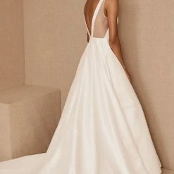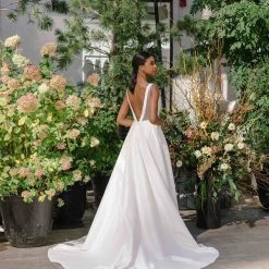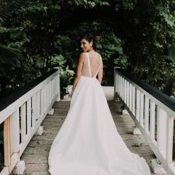- Not bra friendly; additional bust support can be added by an expert bridal tailor