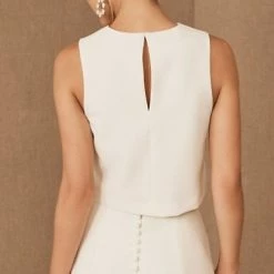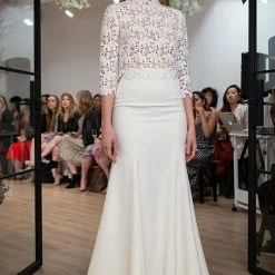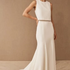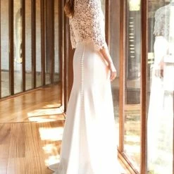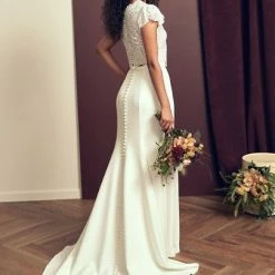 Offering a clean and modern silhouette, this bridal skirt hugs the hips then flares out to form a sweeping train. A row of buttons at the back makes an elegant finishing detail. By Jenny Yoo. Â