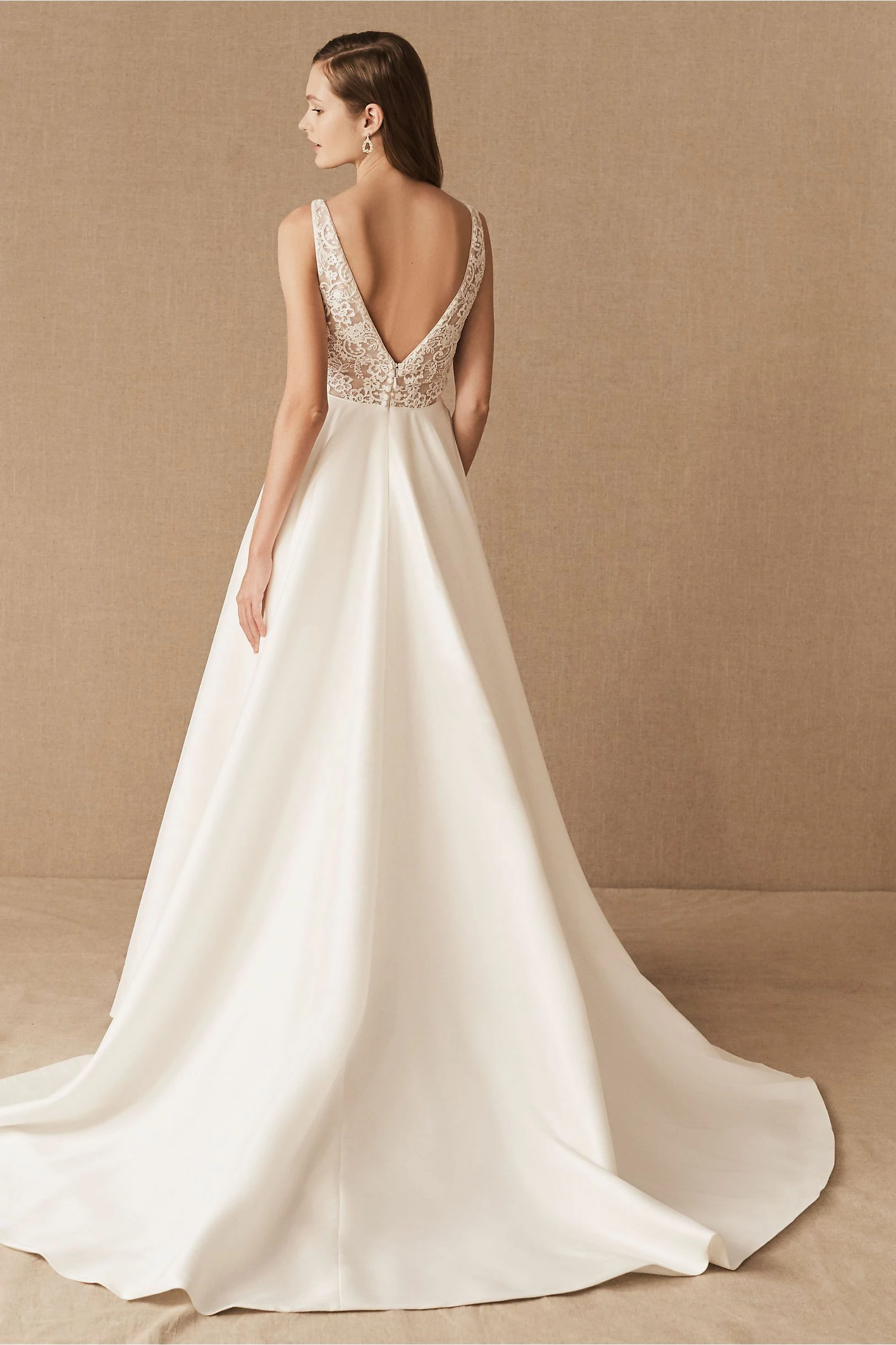 - Not bra friendly; additional bust support can be added by an expert bridal tailor