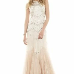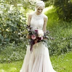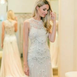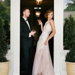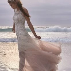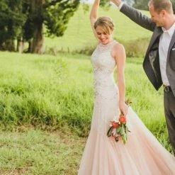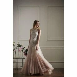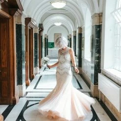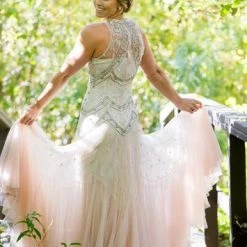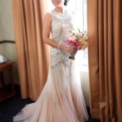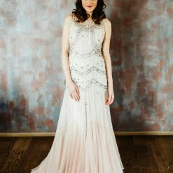 From the tiered layers of rose-hued ombre tulle to the tonal sequins and silver-cut beads, this stunning, contemporary gown is perfect for the bride looking for something a bit unconventional.