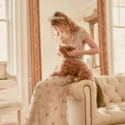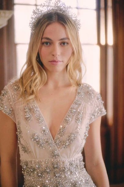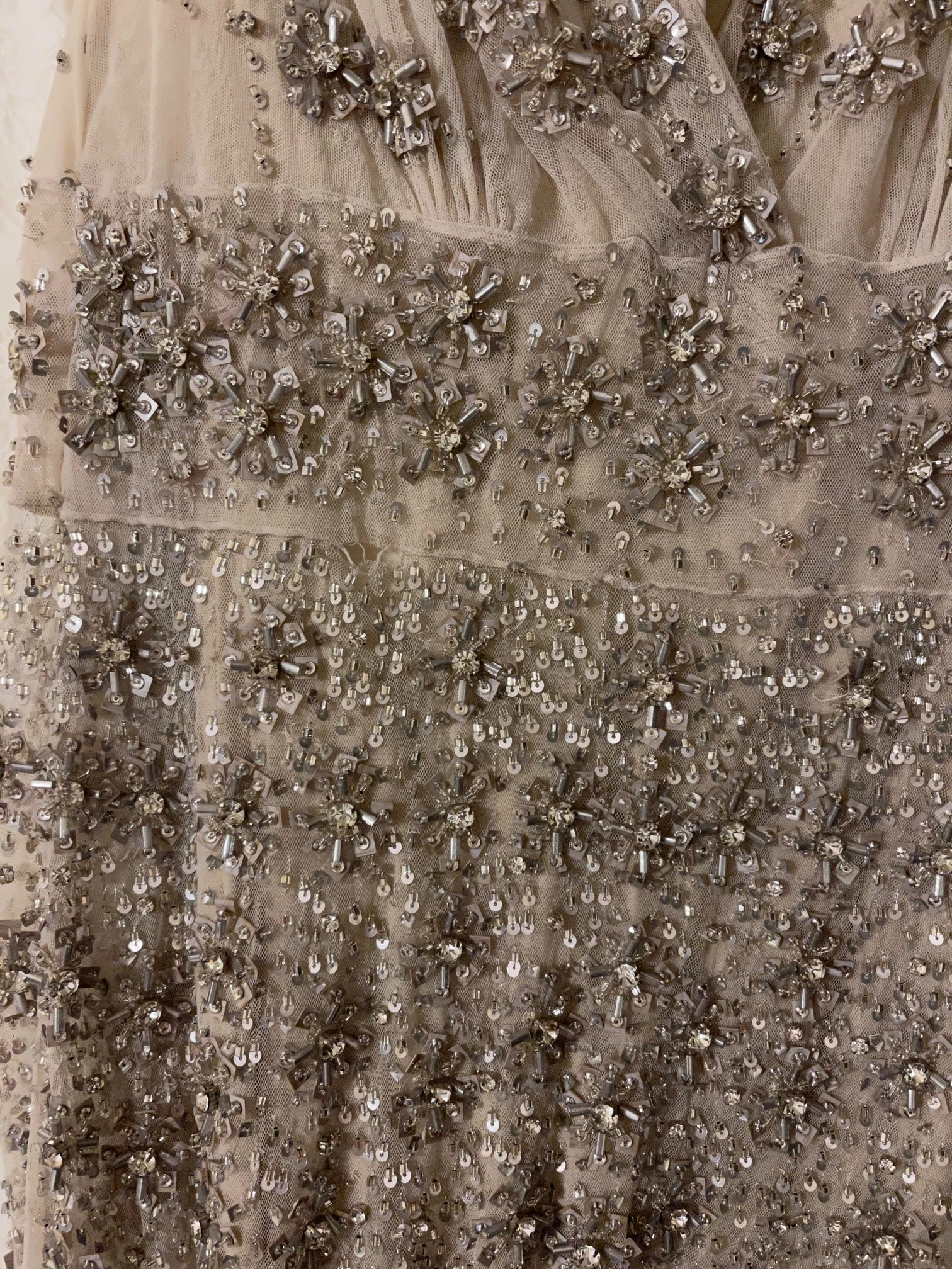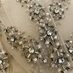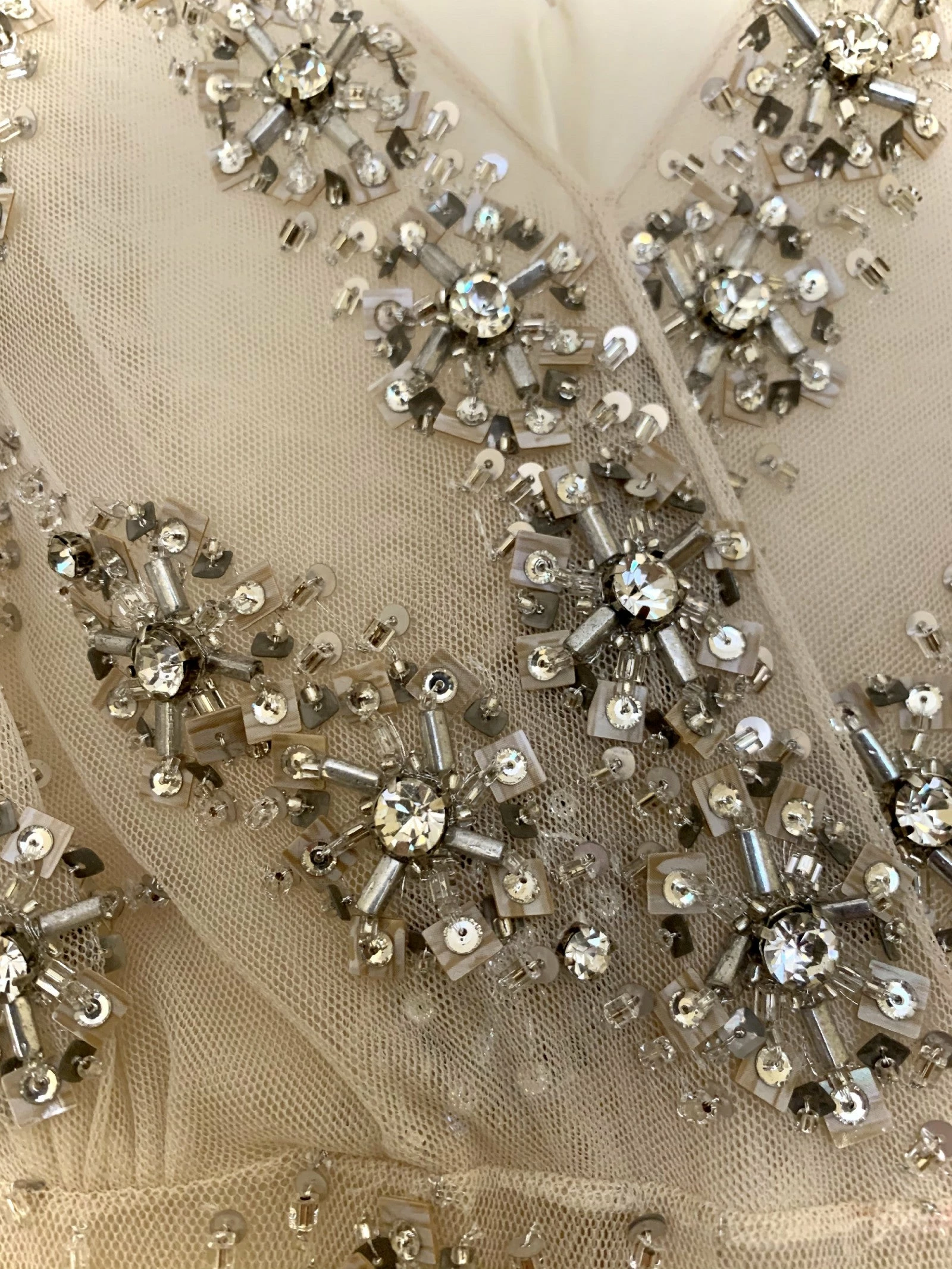 Size 12. Has been tried on in store, but never worn outside the salon and never altered. Some loose threads and few missing beads. Overall in excellent condition. Current style. Retail price: $2,200!
