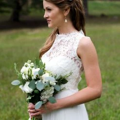 We love the transformation that takes place with this romantic, scrolled lace layer—it changes your look from strapless to sleeveless in a matter of seconds.Â