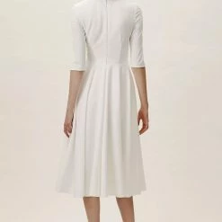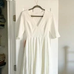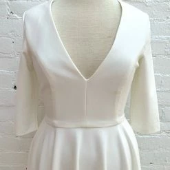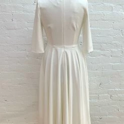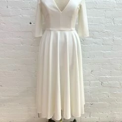 With three-quarter sleeves and a full tea-length skirt, this stunner gives us major mid-century vibes; the plunging neckline is a sexy, modern accent. And it has pockets!