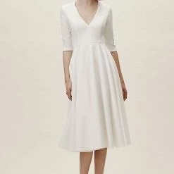 With three-quarter sleeves and a full tea-length skirt, this stunner gives us major mid-century vibes; the plunging neckline is a sexy, modern accent. And it has pockets!