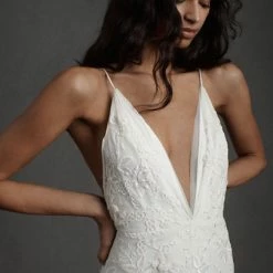 - Not bra friendly; additional bust support can be added by an expert bridal tailor