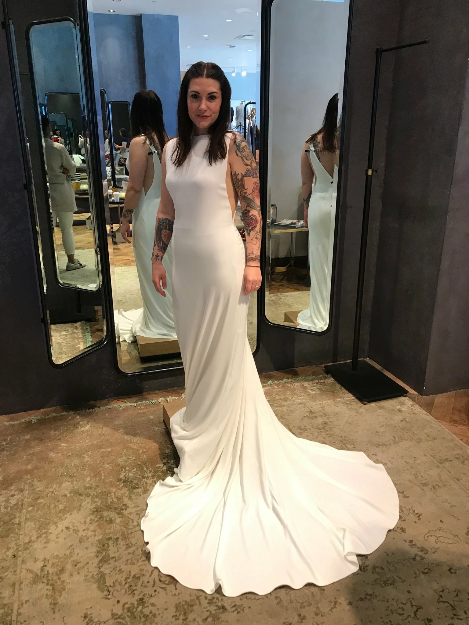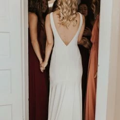 - Not bra friendly; additional bust support can be added by an expert bridal tailor