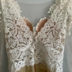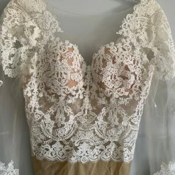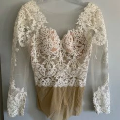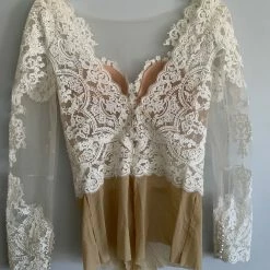 The main issue is that the bottom of the bodysuit is missing one side of the snap closure. So a seamstress would have to add that on (with a possible extension if needed to make it close comfortably). One of the seams on the bottom of the bodysuit (the nude part which is under your skirt) has to be re-stitched. It’s on seam and a super easy fix. And finally, there is a small loose thread on the neckline of the bodysuit. Please see pictures. Also, please note that the interior label with the designer name and size has been removed. This item is guaranteed authentic and is a true size 4.  Retail price: $500!