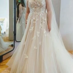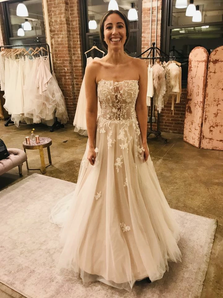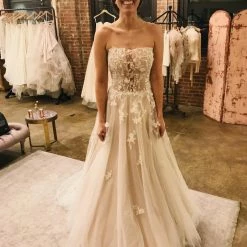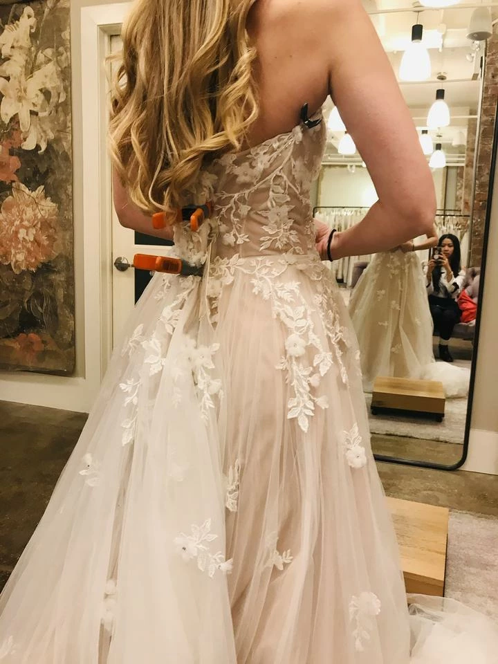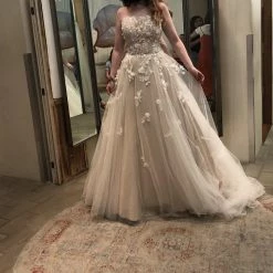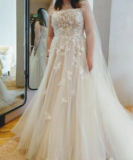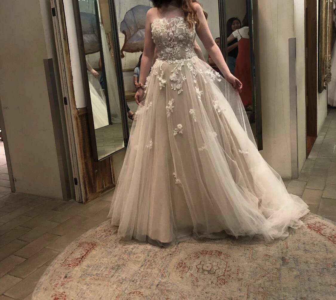 Size 4. Brand new, with tags. May have been tried on in store, but appears to be in like-new condition. No noticeable signs of wear. Never worn outside the bridal salon and never altered. Retail price: $1,995!