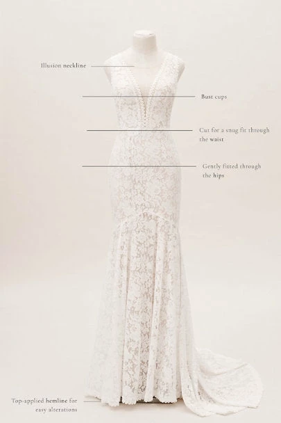 - Not bra friendly; additional bust support can be added by an expert bridal tailor
