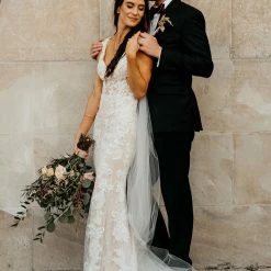 - Not bra friendly; additional bust support can be added by an expert bridal tailor