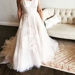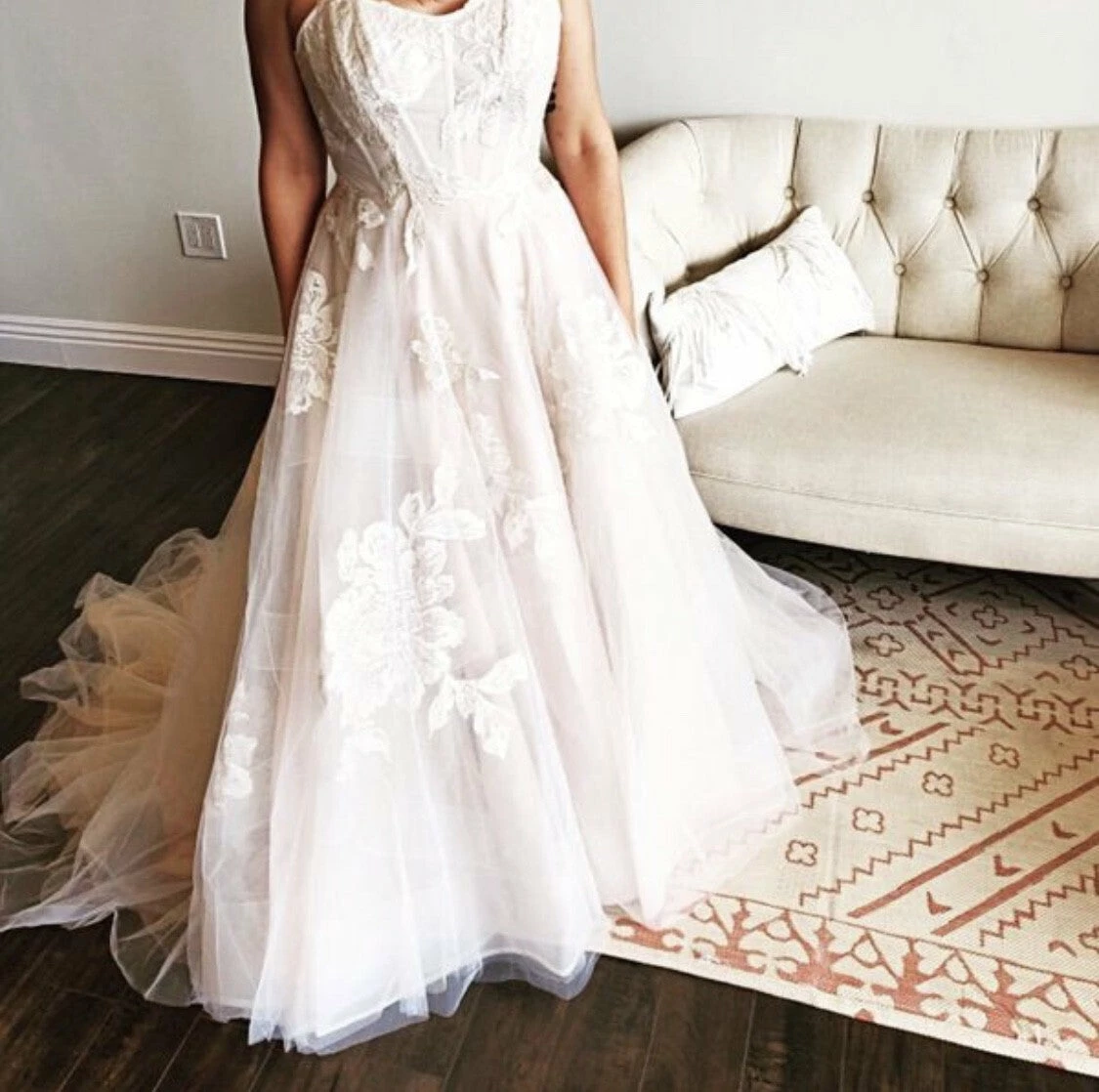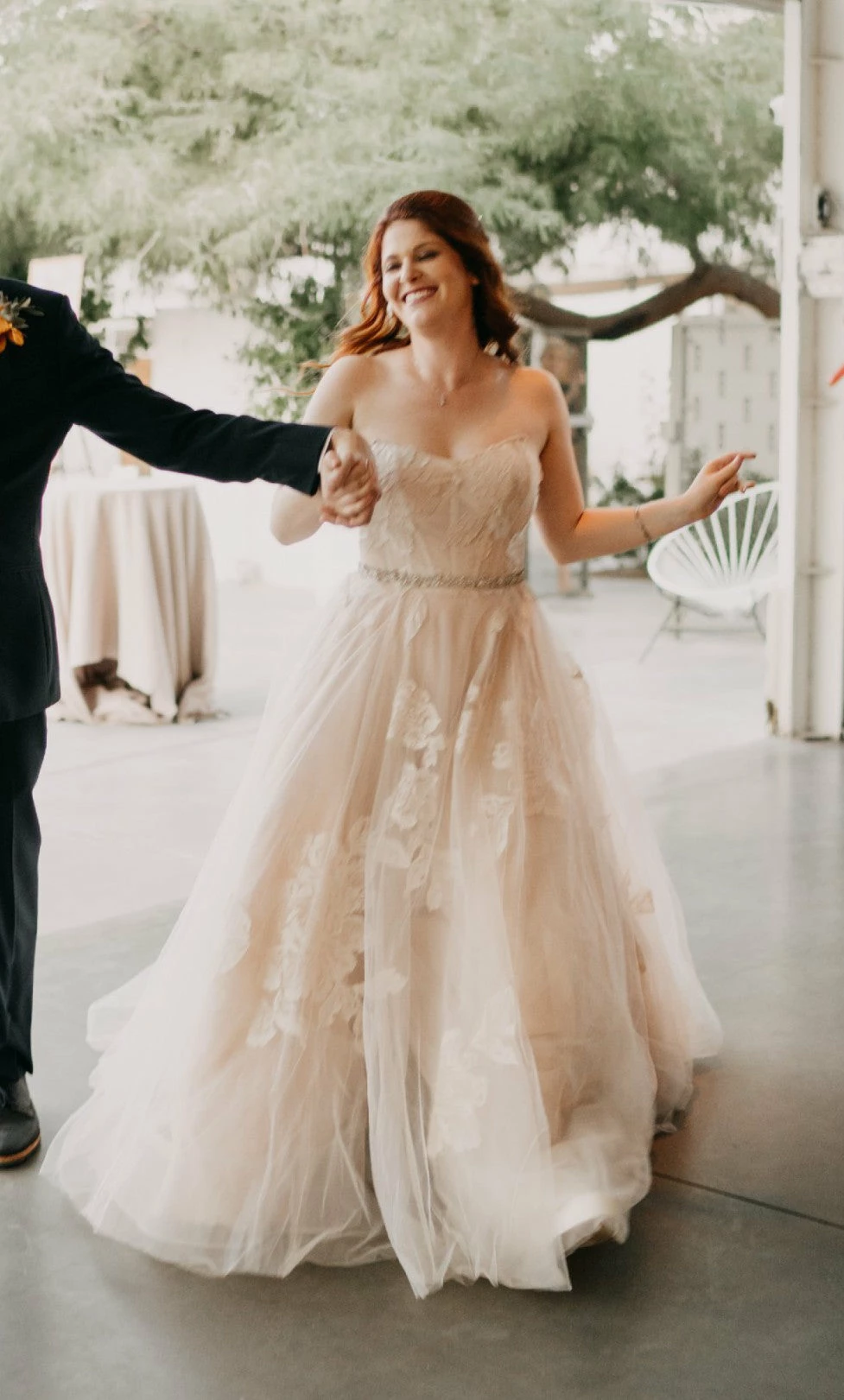 Size 4 & 14. Has been tried on in store, but in like new condition. The Size 4 has minor wear in the back near the zipper, but otherwise it’s in like-new condition. Retail price: $1,600!