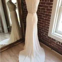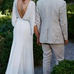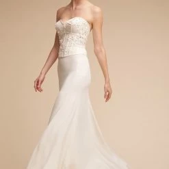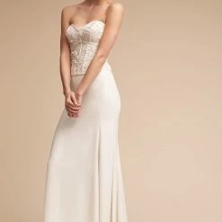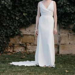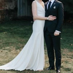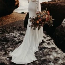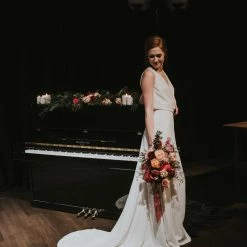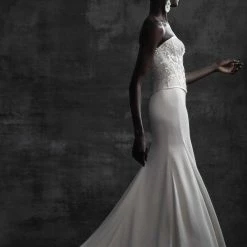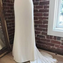 The Nikkie Skirt was made for movement. Featuring chic Georgette with Stretch Poly Charmeuse, this skirt can easily pair with a variety of tops and corsets for a wedding-day look that you can call your own. Beautiful, buttery crepe flows from the hip in this relaxed column skirt. A subtle sweep train adds an extra dose of glam. By Willowby by Watters.