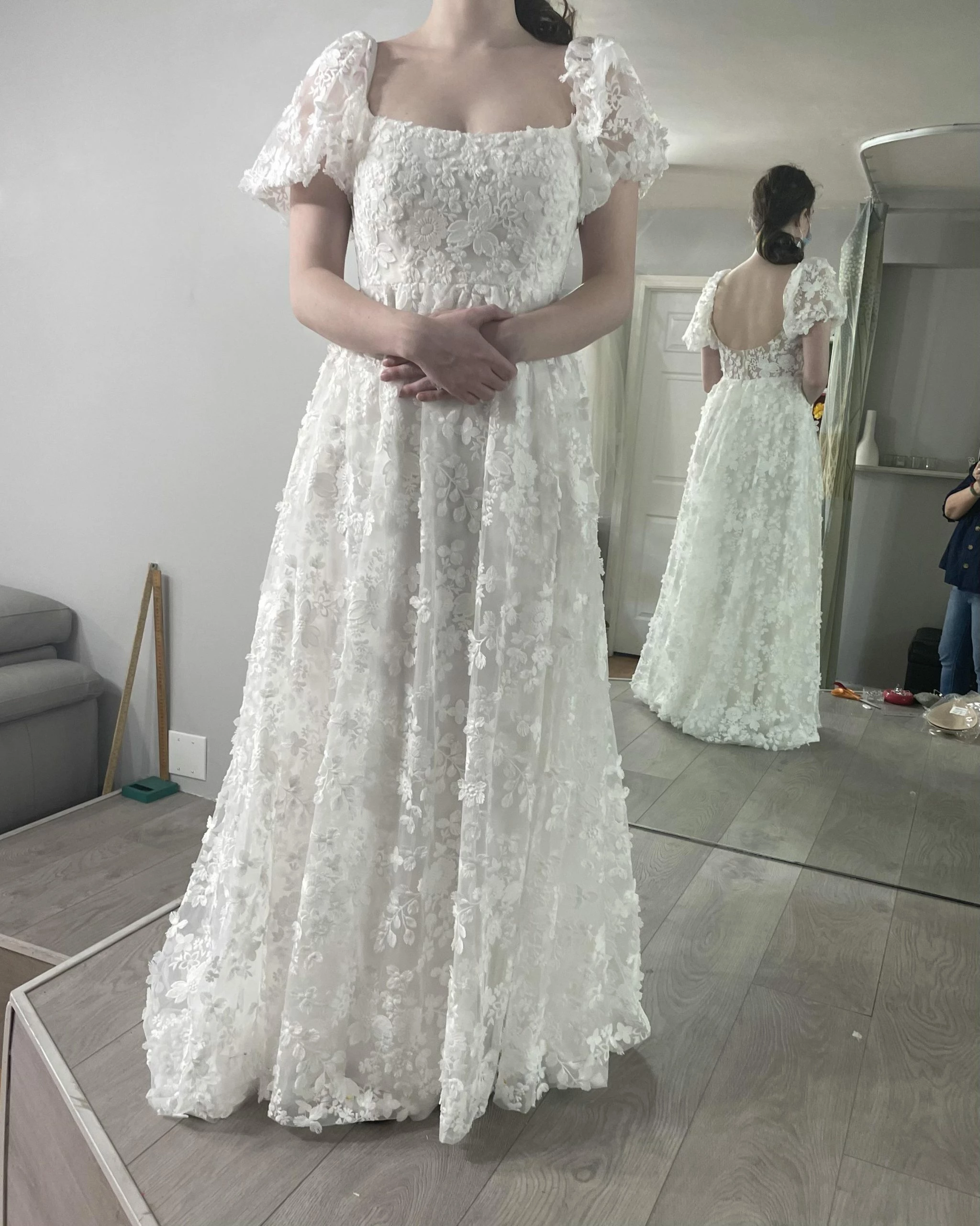 - Not bra friendly; additional bust support can be added by an expert bridal tailor