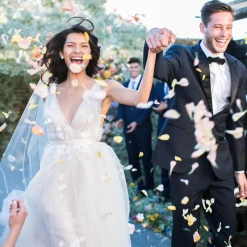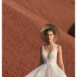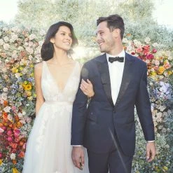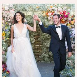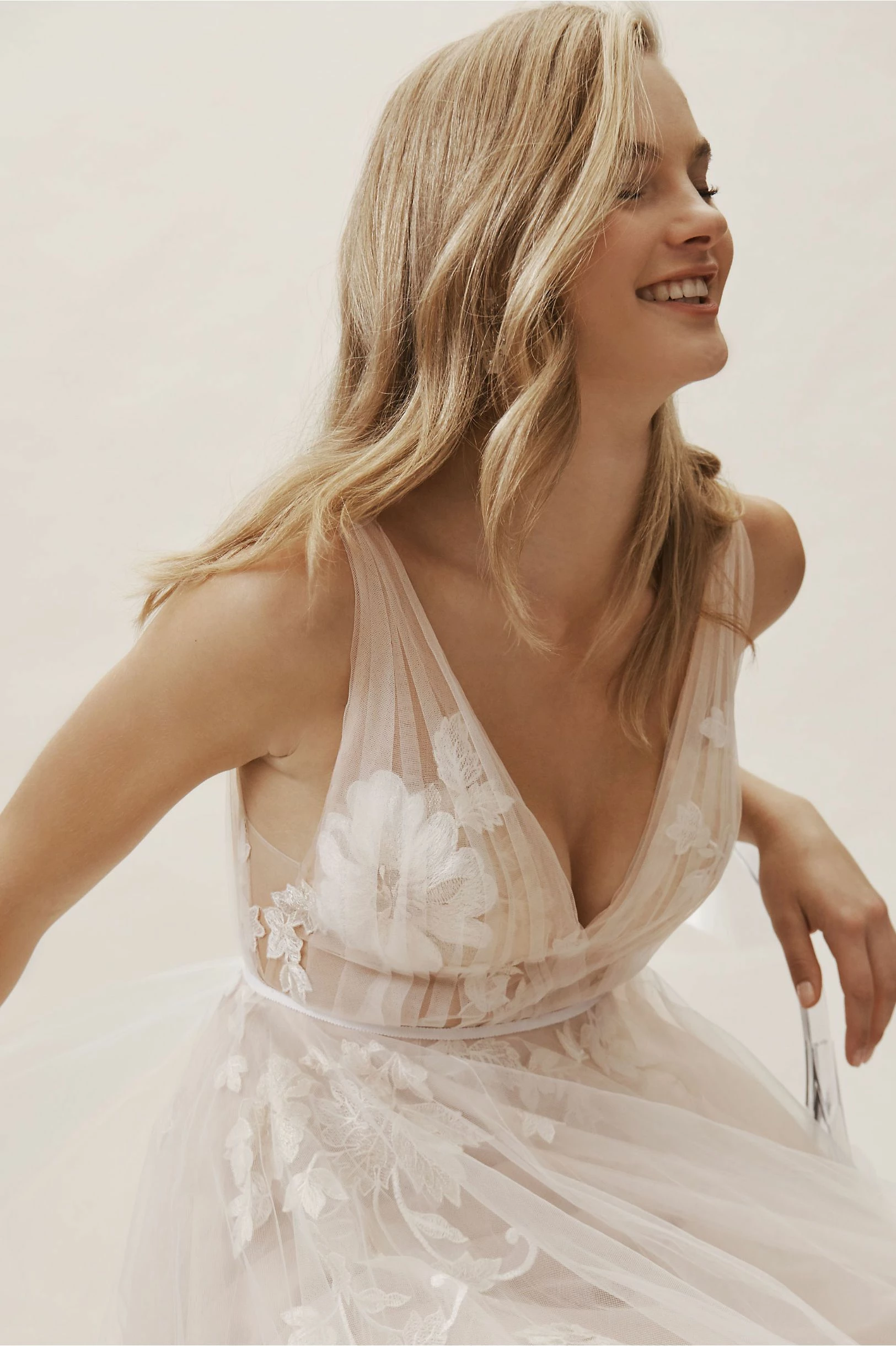 If you want to reveal a little skin—but not too much—a lush gown of illusion tulle laid over with Wildfell Lace is just the thing for the slightly bolder bride.