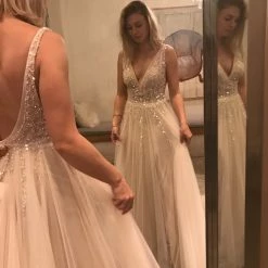- Not bra friendly; additional bust support can be added by an expert bridal tailor