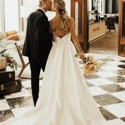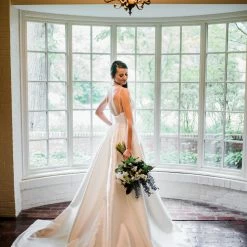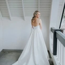 - Not bra friendly; additional bust support can be added by an expert bridal tailor