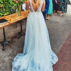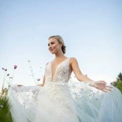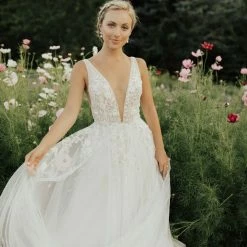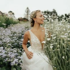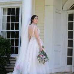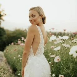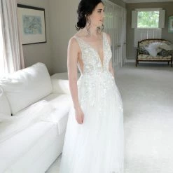 - Not bra friendly; additional bust support can be added by an expert bridal tailor