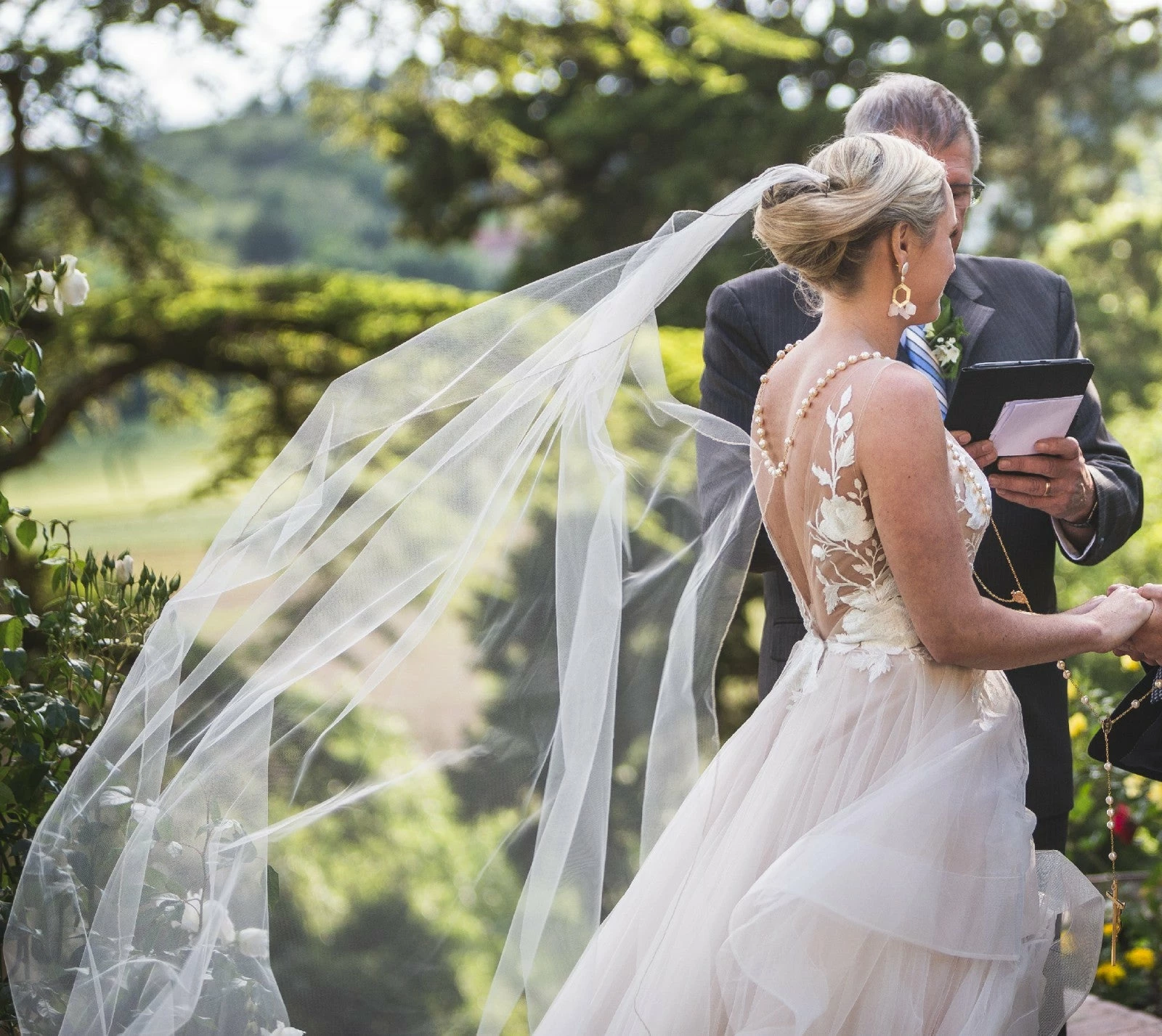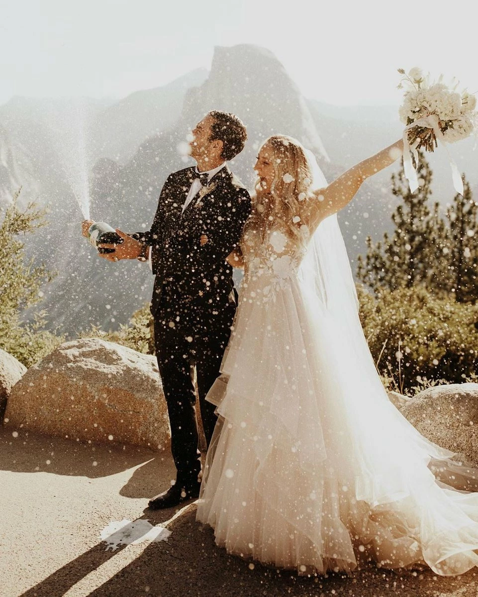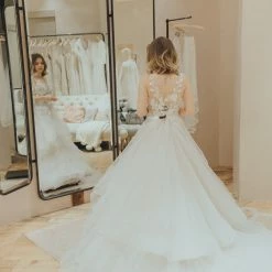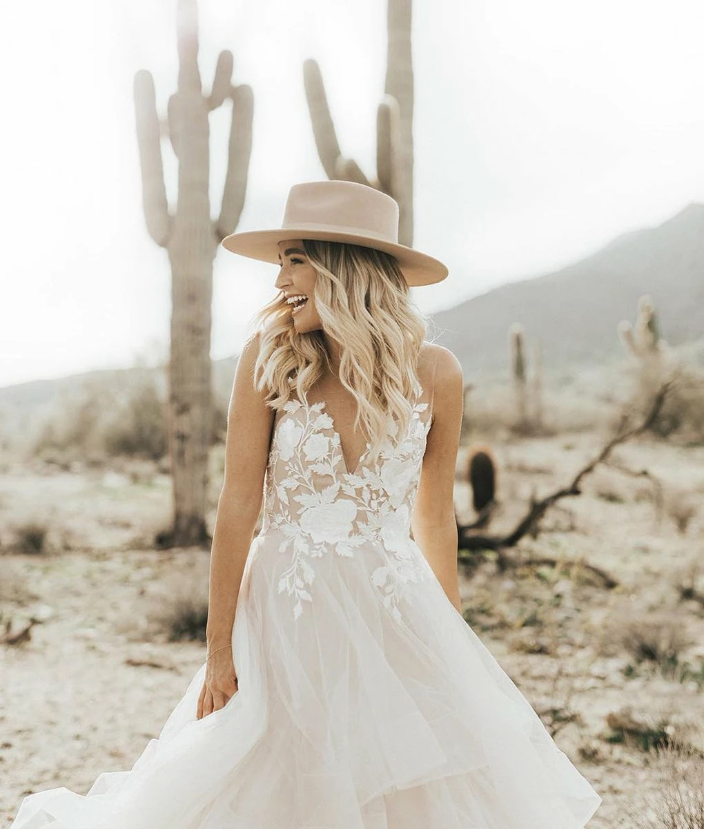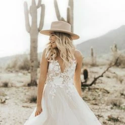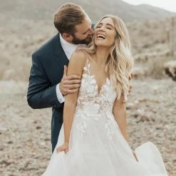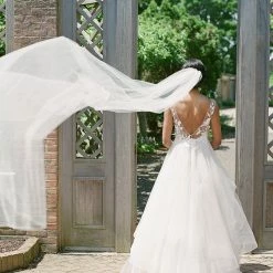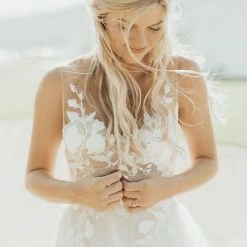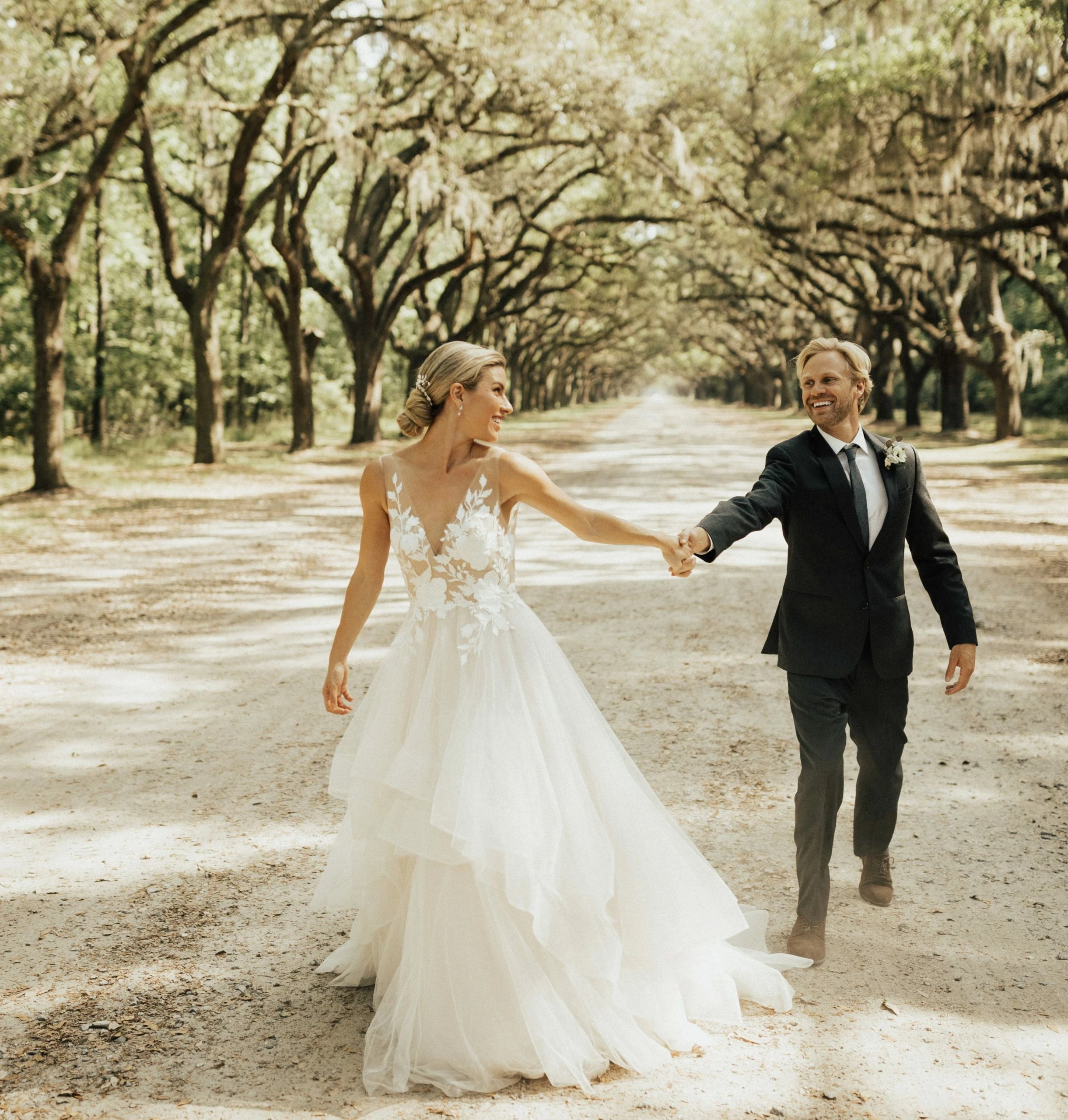 A floral-embroidered bodice features a plunging neckline and sheer back for a stunning finish, but our favorite part of this showstopping ballgown is its voluminous tiered skirt. By Wtoo.