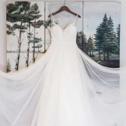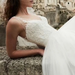 Femininity at its most delicate, this gown exemplifies bridal elegance. A bodice with a Samira Embroidered Motif shimmers with every movement, and the flowing Soft Netting skirt is a dream come true. Sweep train.