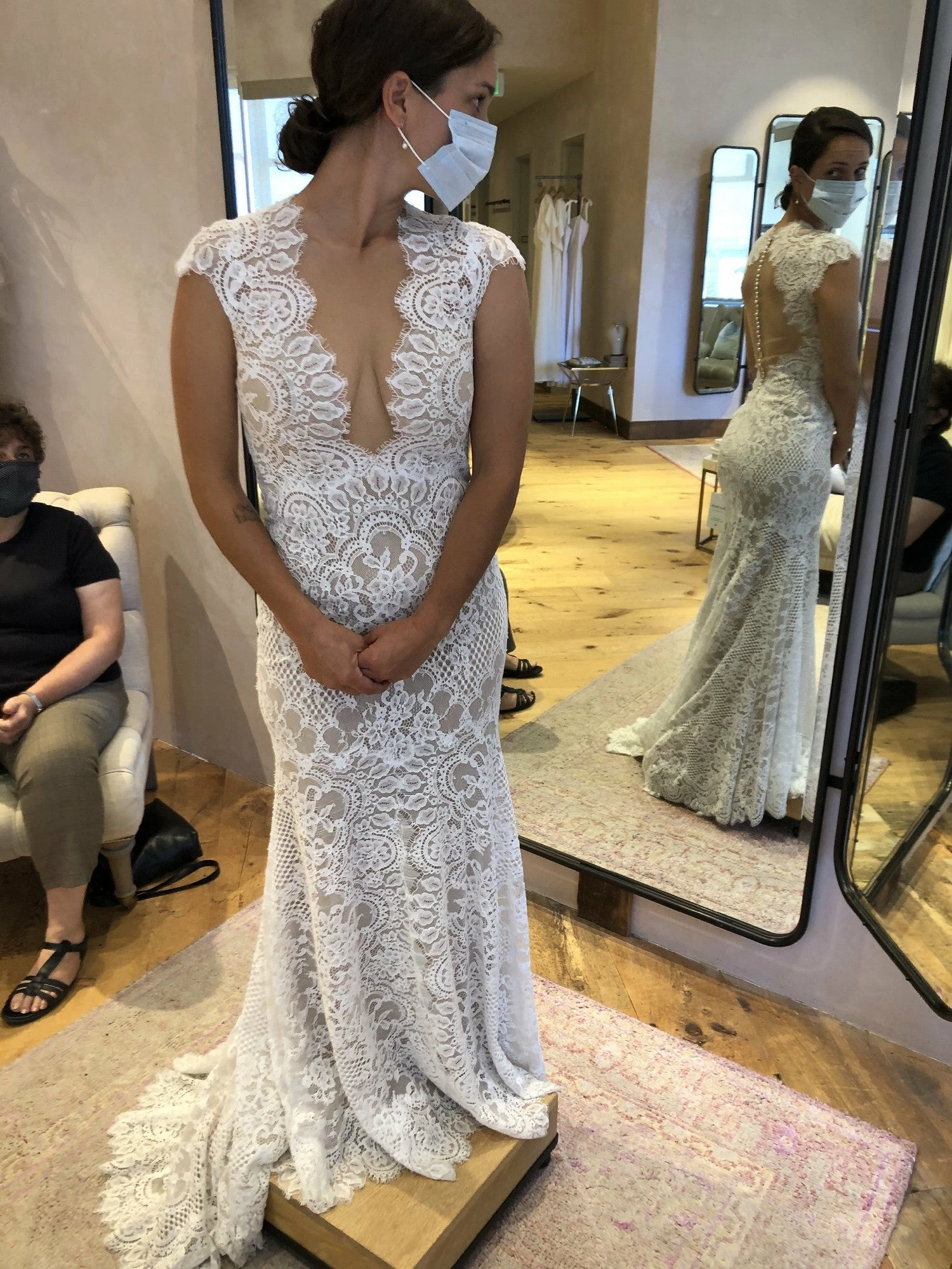 - Not bra friendly; additional bust support can be added by an expert bridal tailor