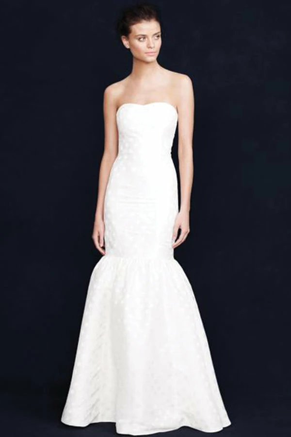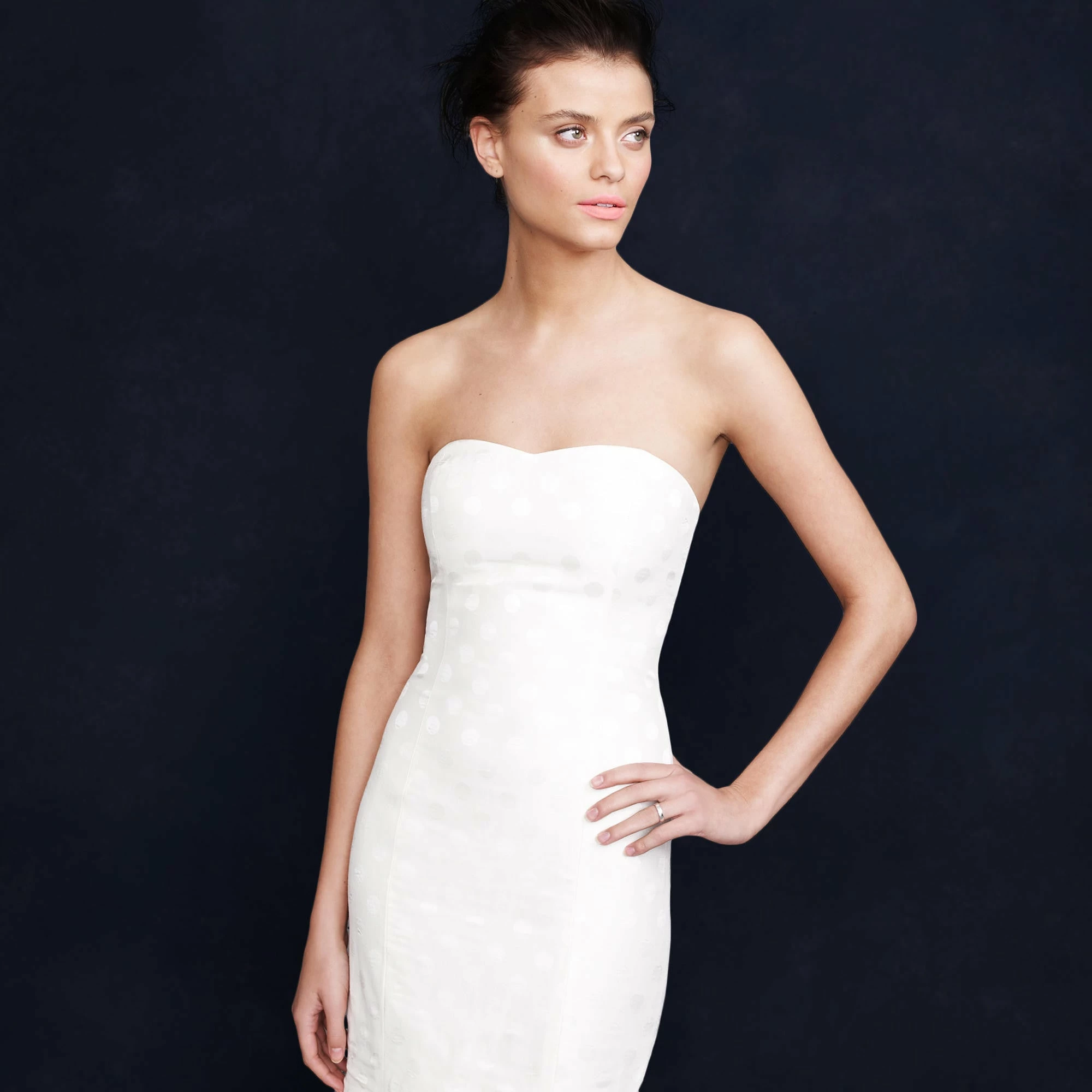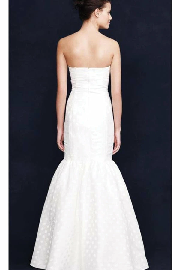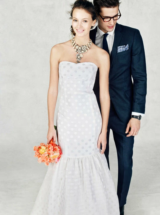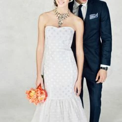 A toast to our designers for creating a gown that’s just as bubbly as you will be on your big day. In deliciously lightweight linen and silk with a shimmering jacquard dot and featuring a sweetheart neckline and a mermaid shape finished in a full-bodied skirt with layers of tulle underneath. Perfect for alfresco affairs and black-tie occasions alike, it’s the epitome of effervescence.