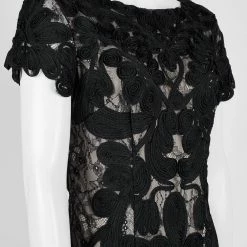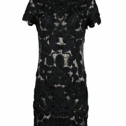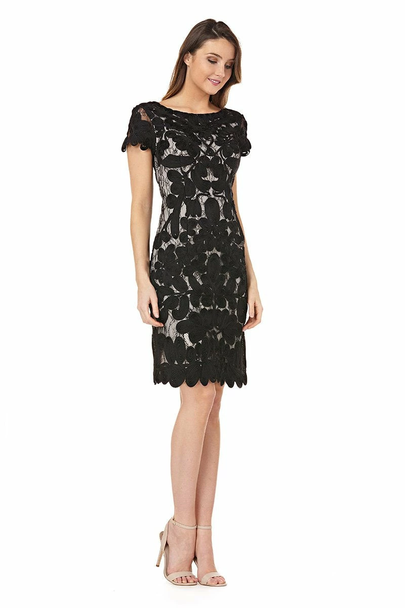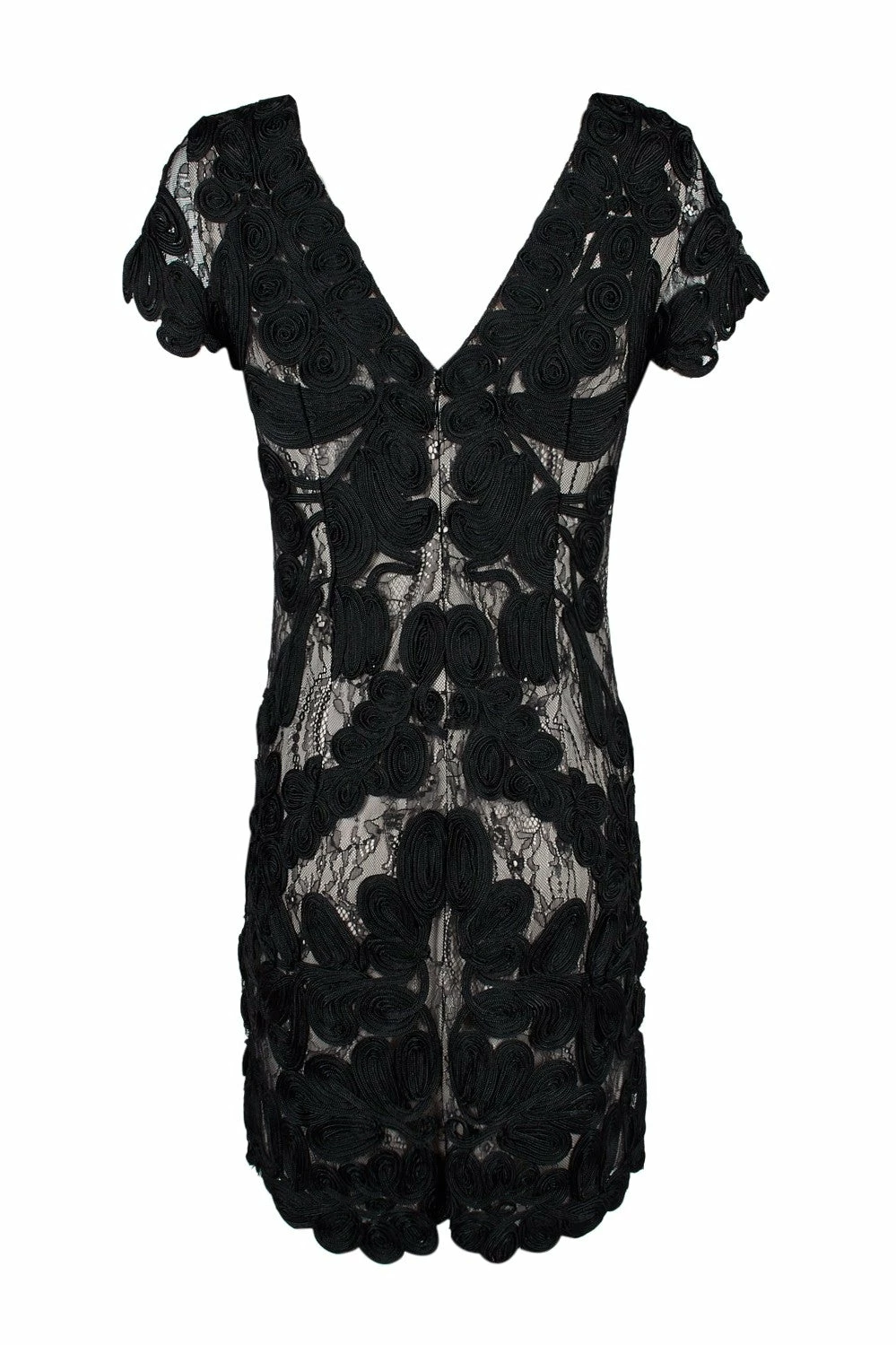 This knee length wedding guest party guest will leave you looking stylish and elegant. This form-fitting pencil skirt flows smoothly over the waist and hips. Pair with neutral heels and dainty jewelry. Novelty, two-tone, soutache embroidery on lace cocktail dress.Â