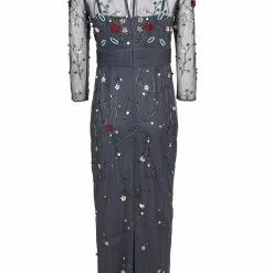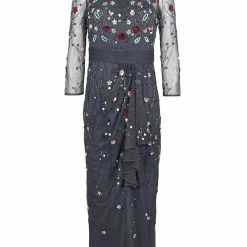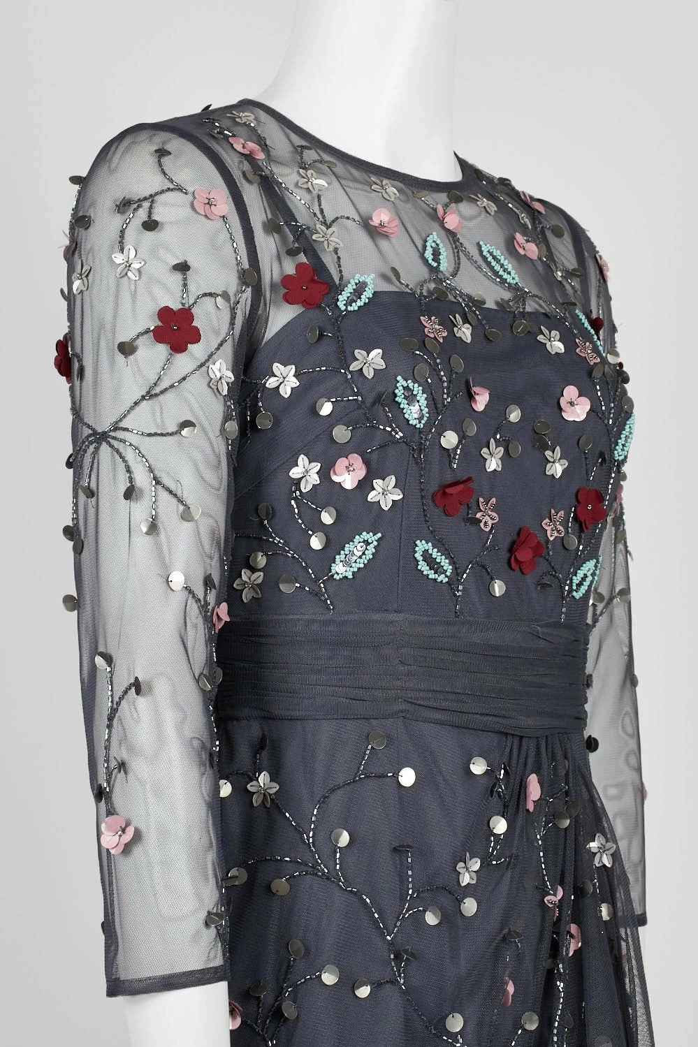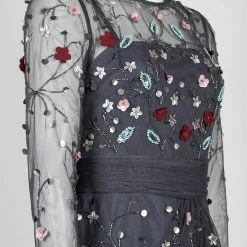 JS Collections Floral Beaded Gown – Charcoal Multi