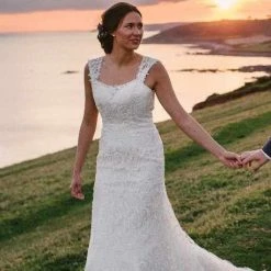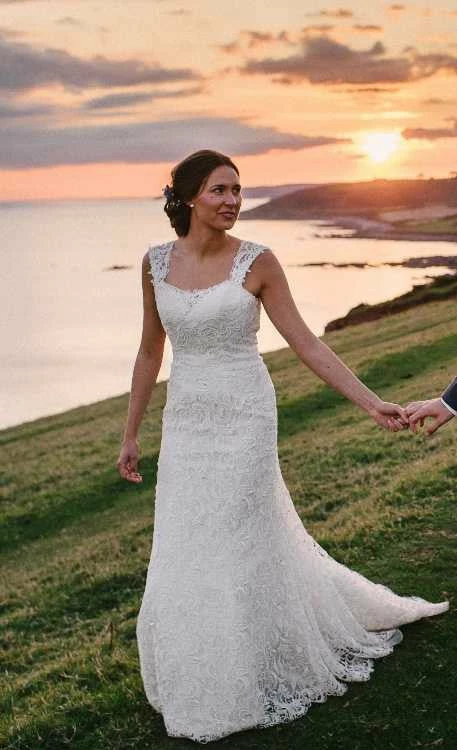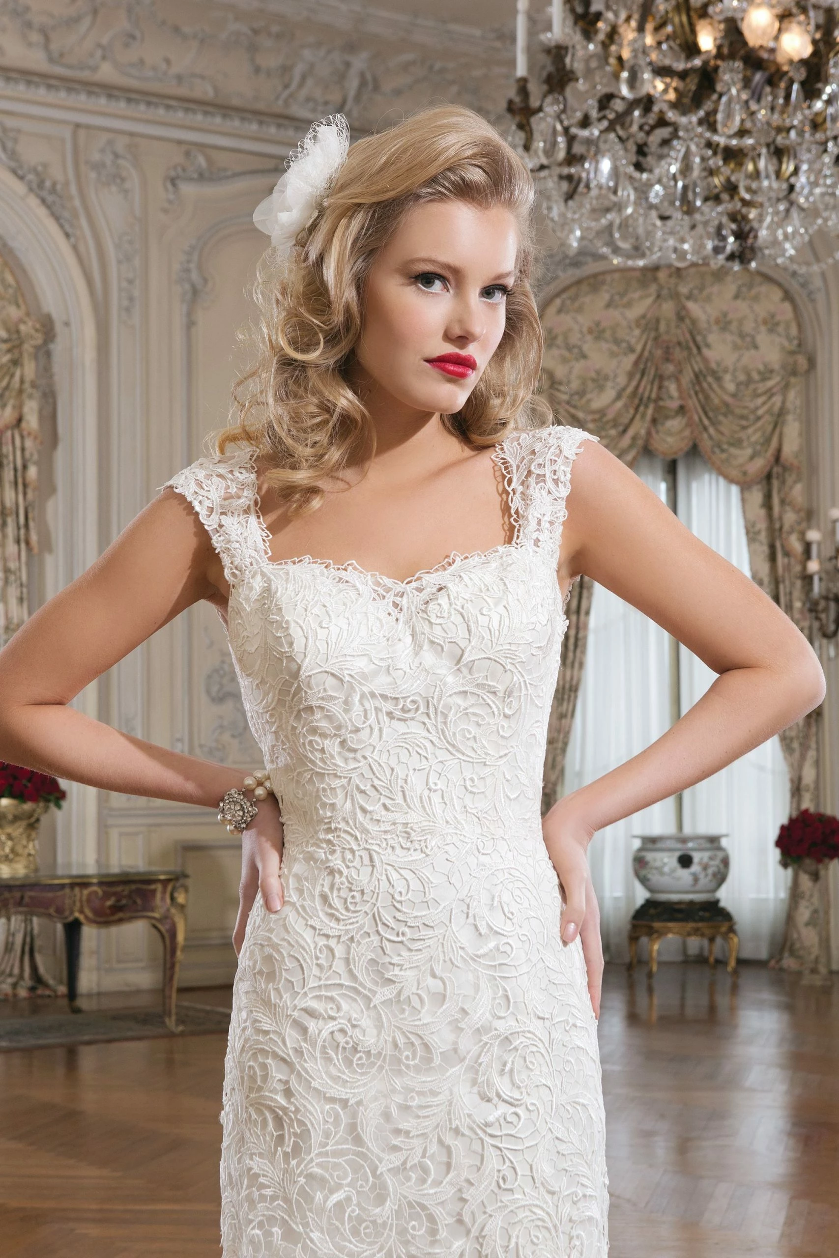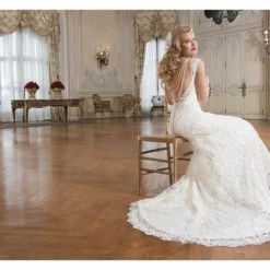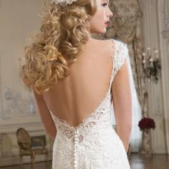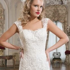 Justin Alexander 8761 is a venice lace fit and flare dress featuring a sweetheart neckline.Â