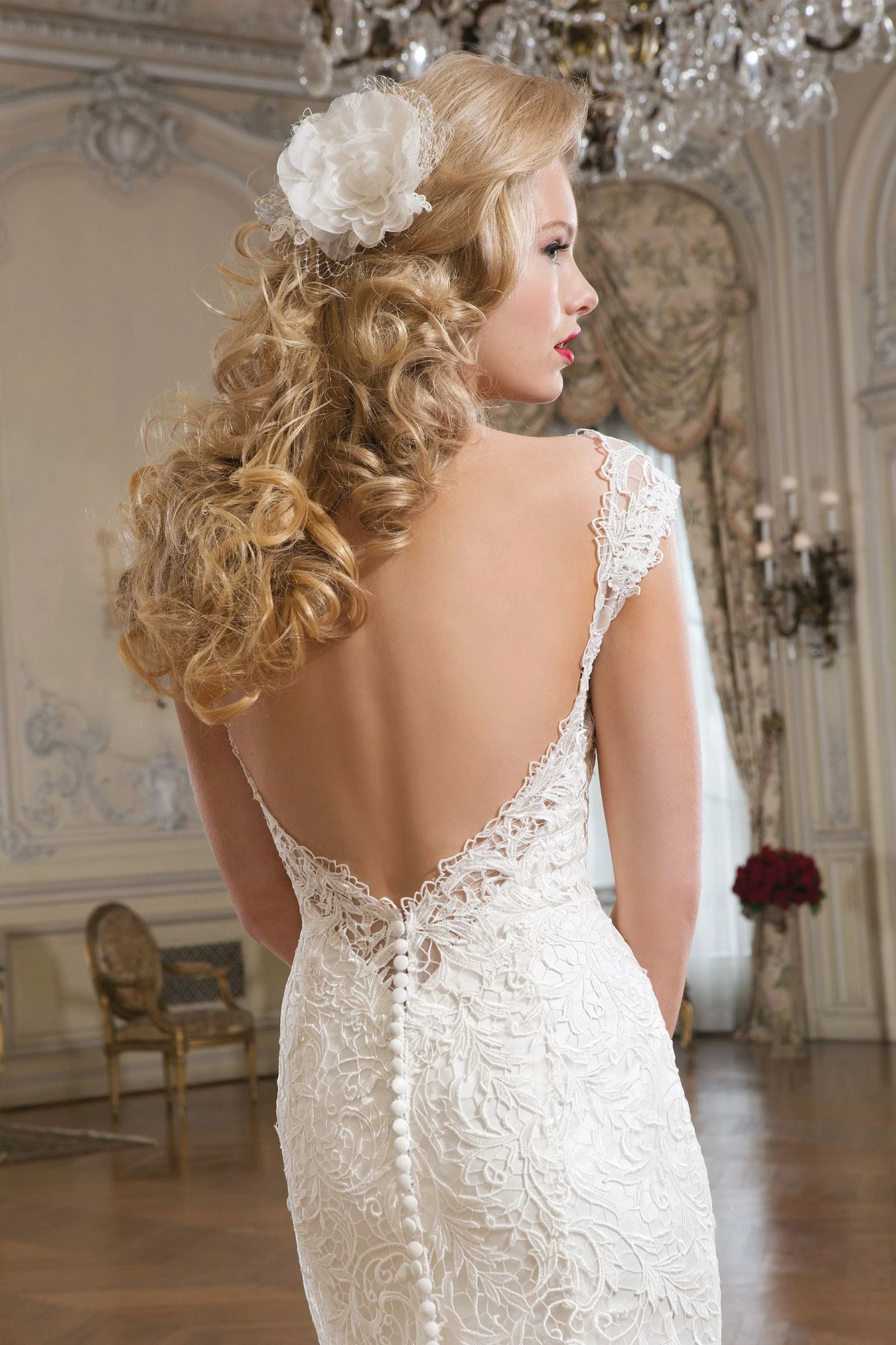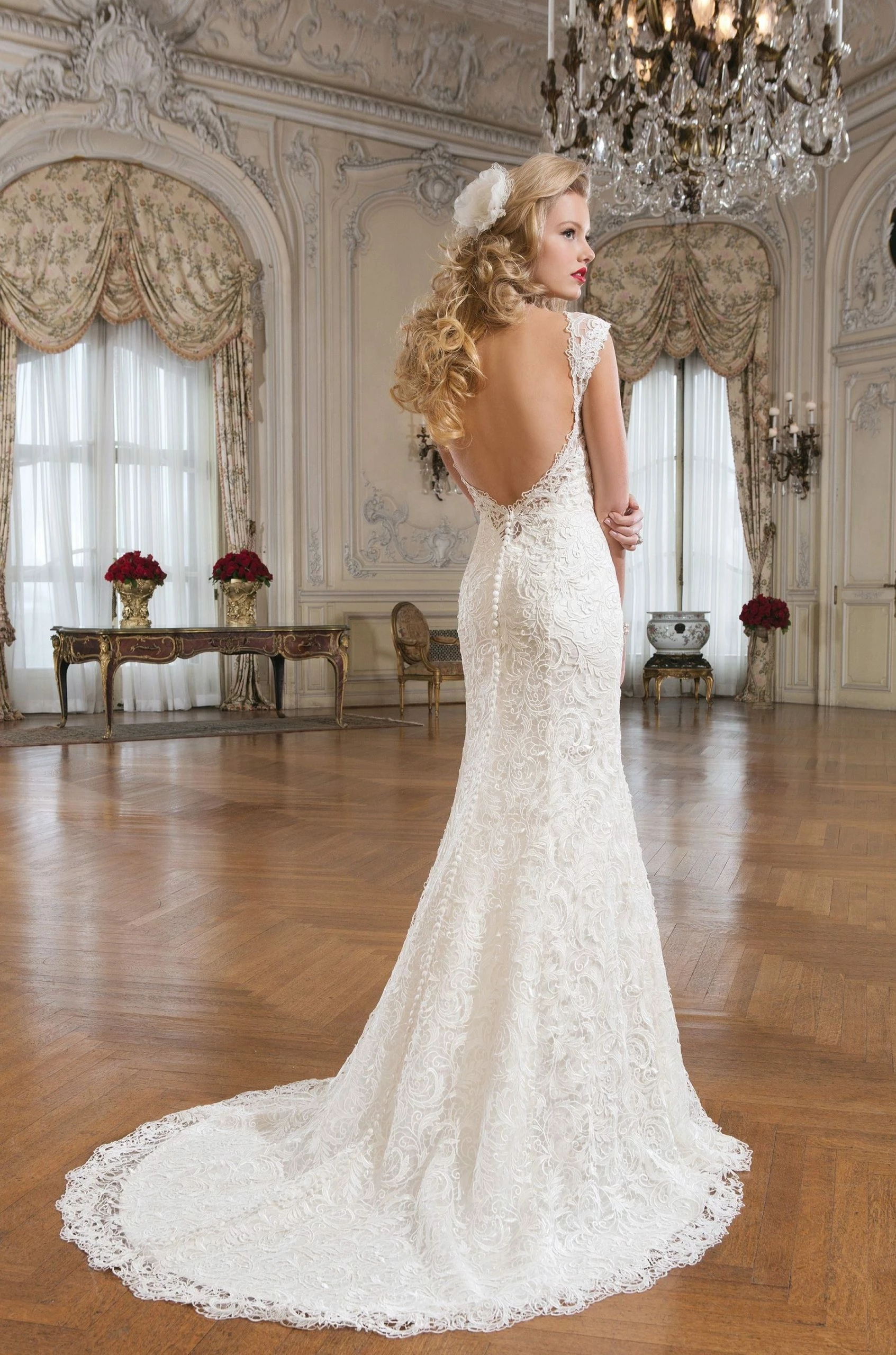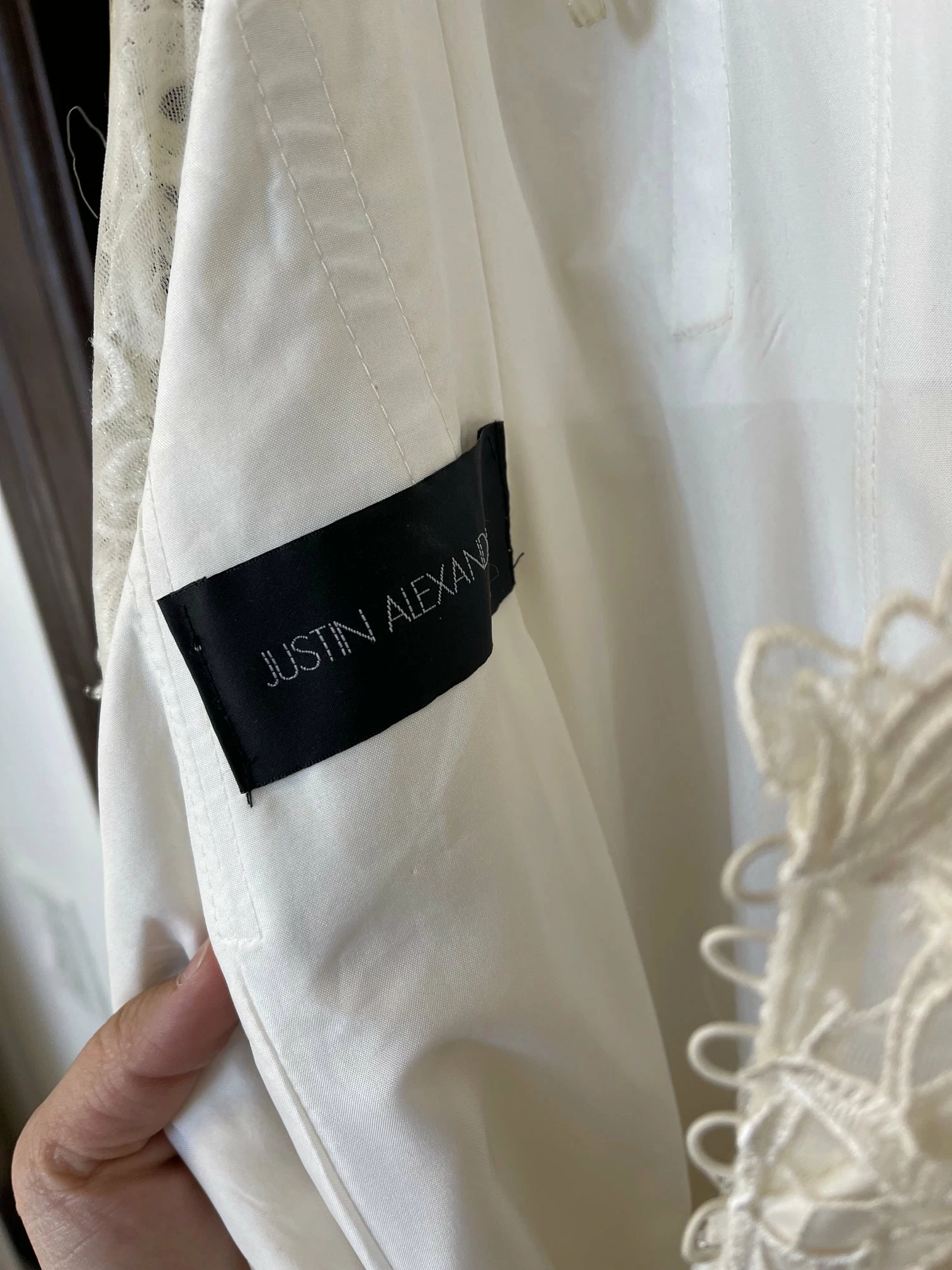 CONDITION: This dress was a store sample. There is very light amounts of dirt along the hemline and professional cleaning is at your discretion.  There is light wear on the lace and a few imperfections. One small tear in the lace on the hip area (see picture of actual dress). It can easily be stitched up by a seamstress.  Price reflects the current condition of the gown.  Overall, the dress is in very good condition. Â