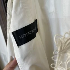 SIZE: It is a bridal size 10. The measurements from the Justin Alexander size chart for a size 10 are Bust 36 in, Waist 28 in., Hips 40 in.  DRESS RUNS SMALL so please be sure of your measurements!