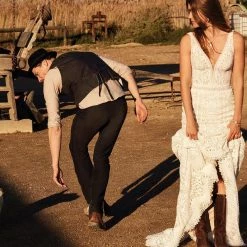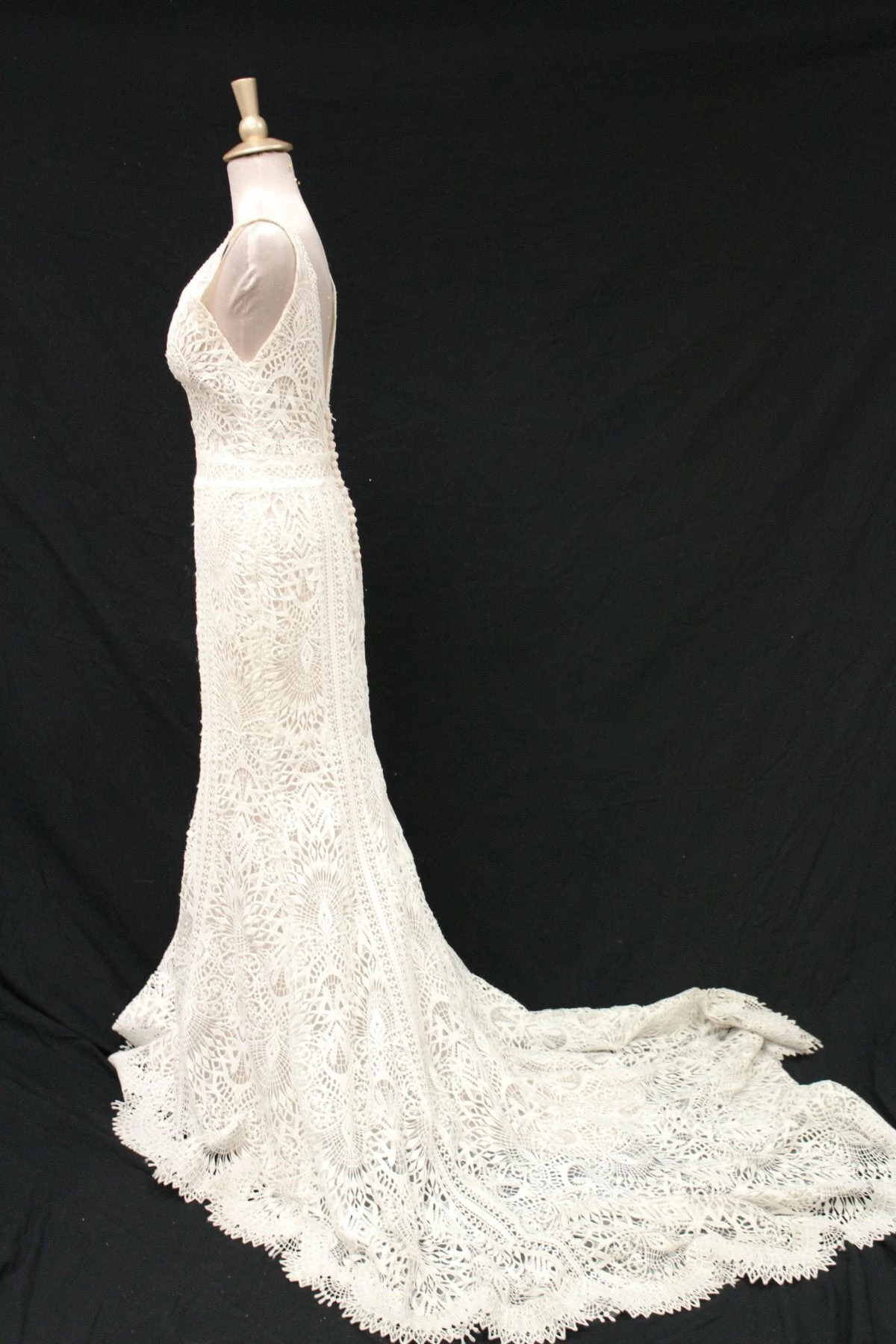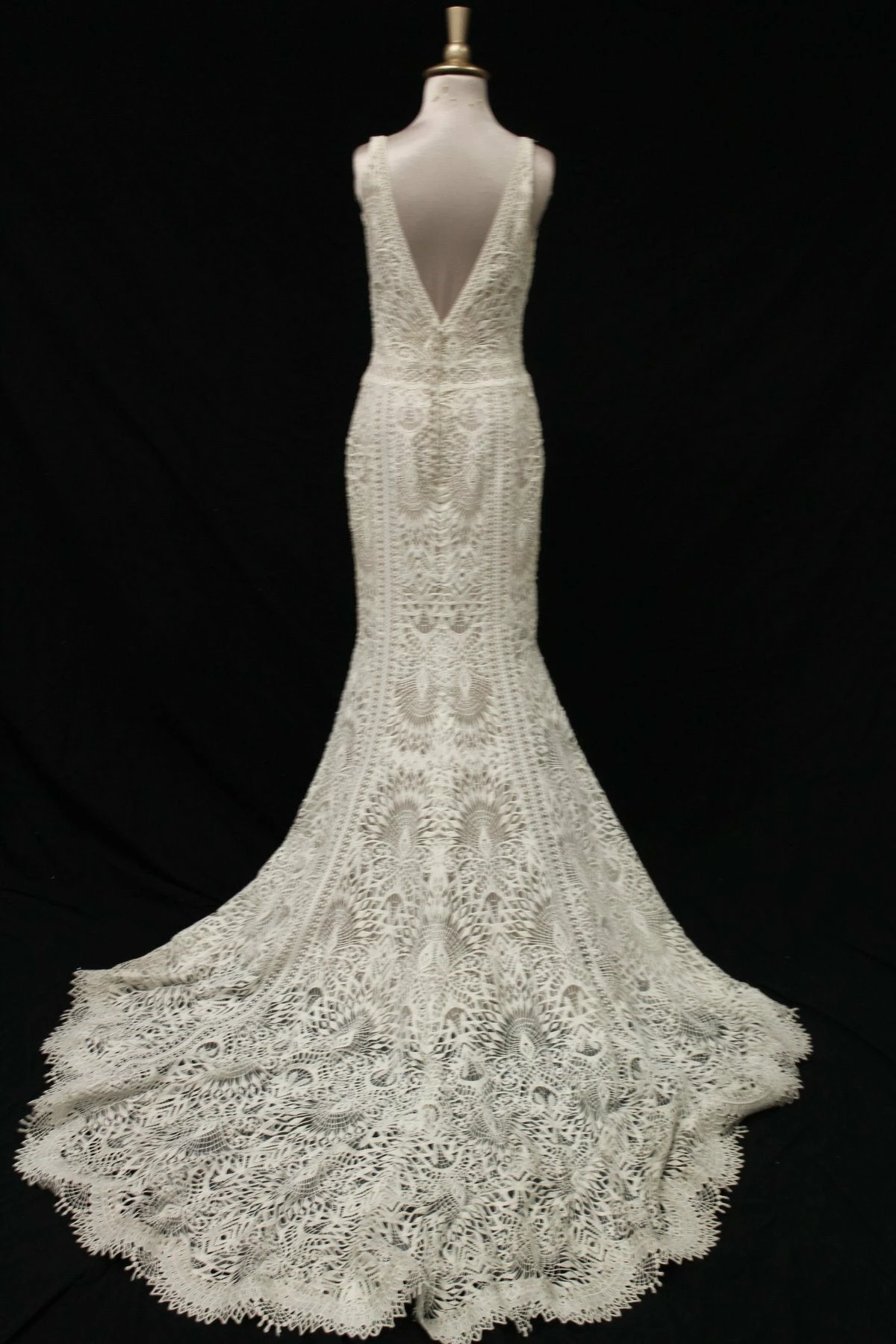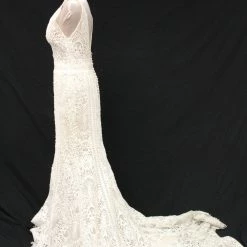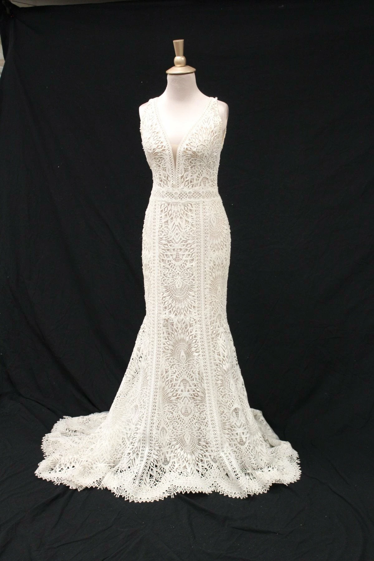 This gown is by bridal designer Lillian West. The style is 66126. It is designed in lace. The original retail price of this gown was $1,895.00.  This is a current Lillian West style.Â