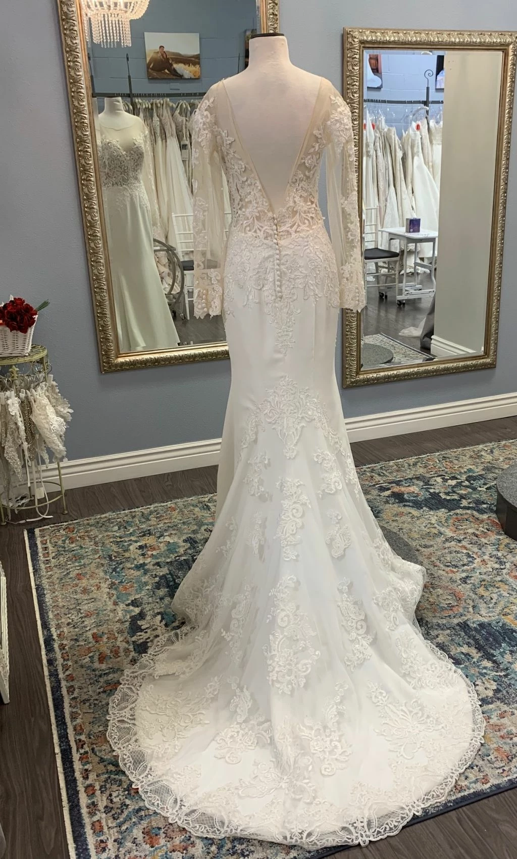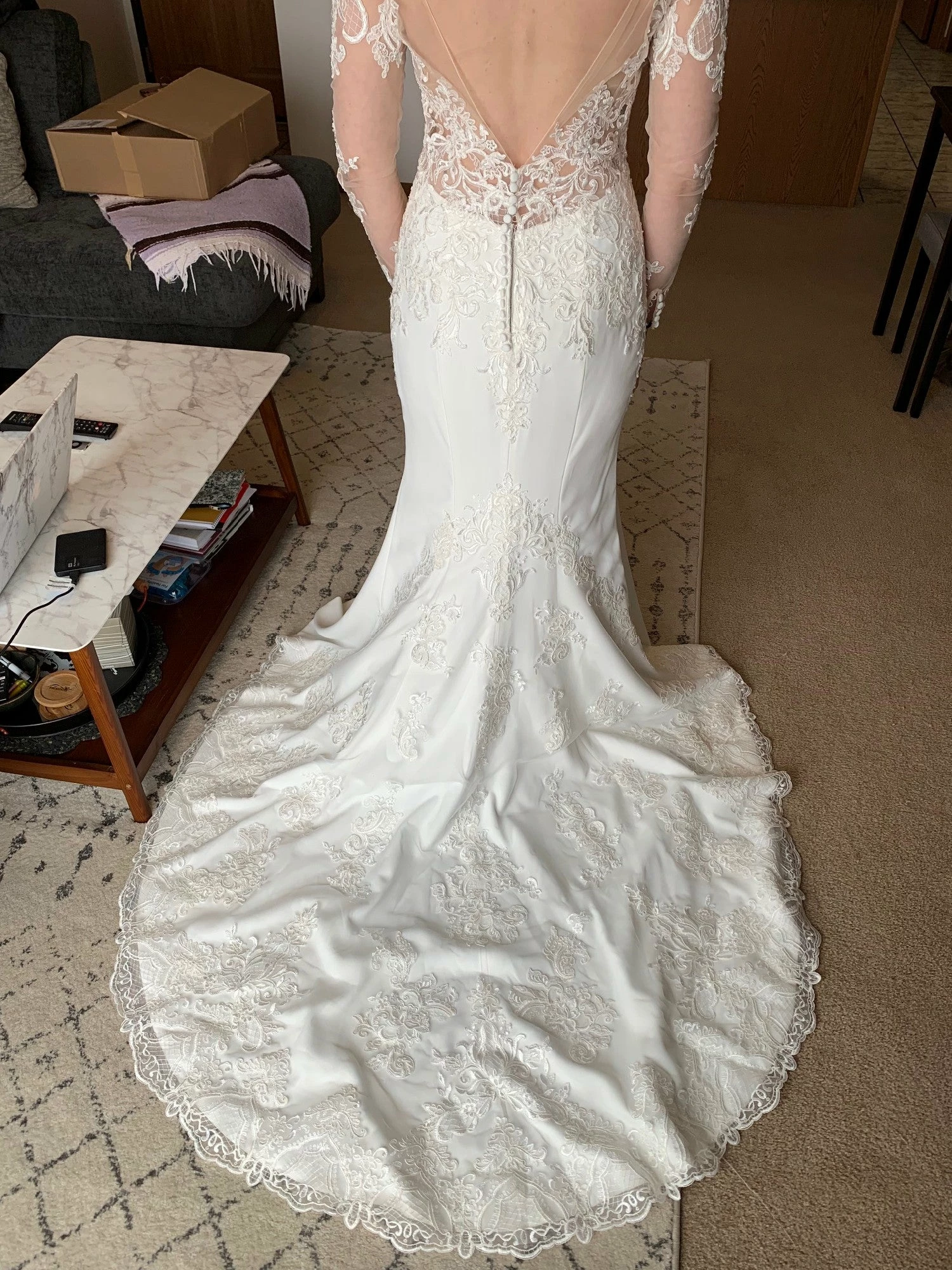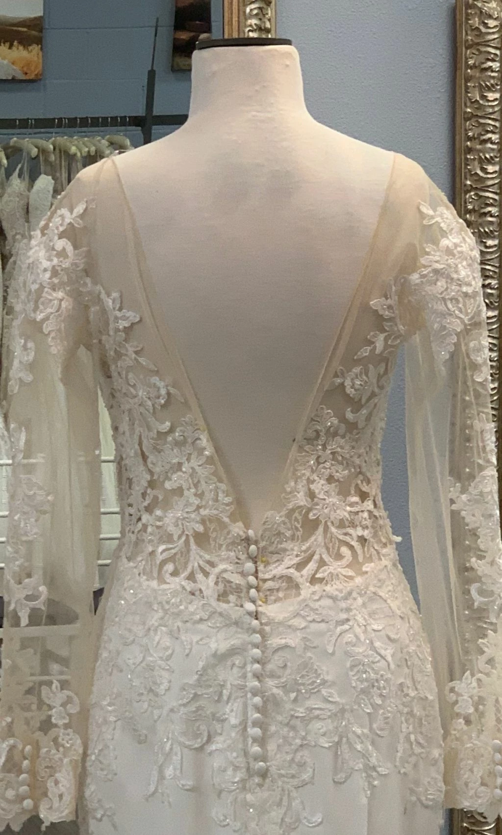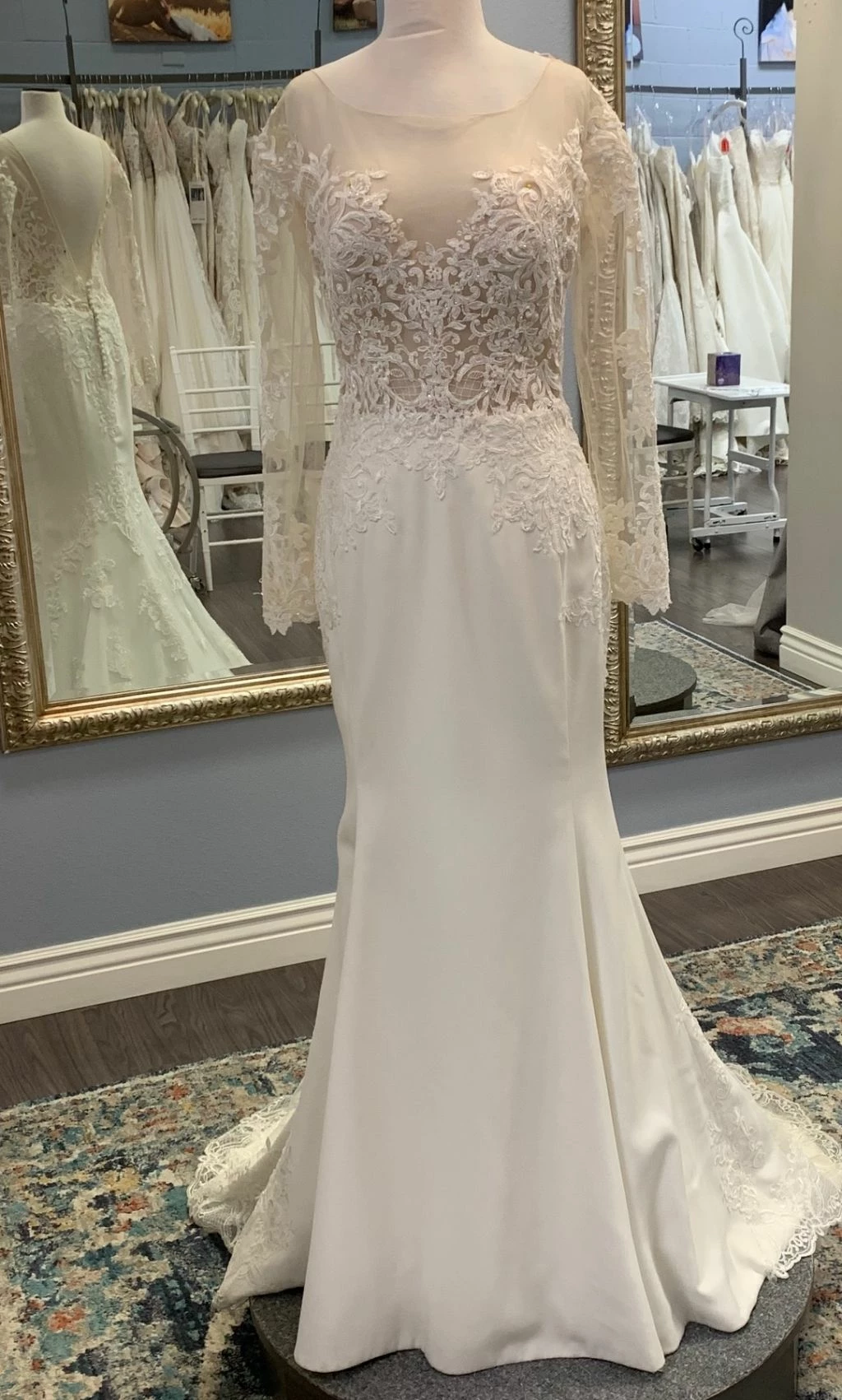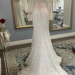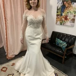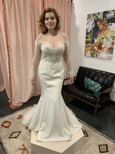 Size 8. This gown was a sample at a high end bridal boutique but does not show any signs of wear. In like-new condition. Retail price: $1,570.