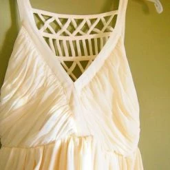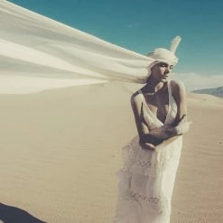 Love unconventional bridal designs? Mara Hoffman’s bridal collection, called the “Devotional” collection, revisits some of her favorite silhouettes from past seasons and includes new silhouettes crafted from silk georgettes and chiffons. The gowns, named after Greek, Roman and Hindu goddesses, feature hand beading, embroidery and lattice details. This dress is 100% silk and is perfect for free-spirited brides or for a beach wedding!