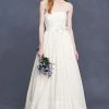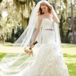 Graphic lace and billowy swirls of royal organza make up this fit-and-flare wedding gown from Martina Liana. Wear with a beautiful belt to accentuate your waist (not included).Â