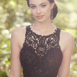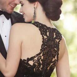 This gown is by bridal designer Martina Liana. The gown is made up of two separates–the Brody bodice designed in lace and the Sanja skirt designed in Bellagio Crepe The color for both pieces is black. The skirt is a size 12. The original retail price of this skirt was $1,400.00.