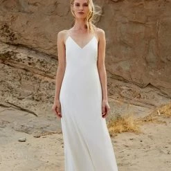 This classic bias cut, silk satin slip dress is cut with ease on the body for a looser fitting, flowing silhouette. The low V neckline is perfectly balanced with its delicate spaghetti straps and is finished with a beautifully sweeping court train.