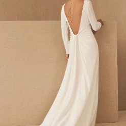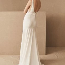 This classic bias cut, silk satin slip dress is cut with ease on the body for a looser fitting, flowing silhouette. The low V neckline is perfectly balanced with its delicate spaghetti straps and is finished with a beautifully sweeping court train.
