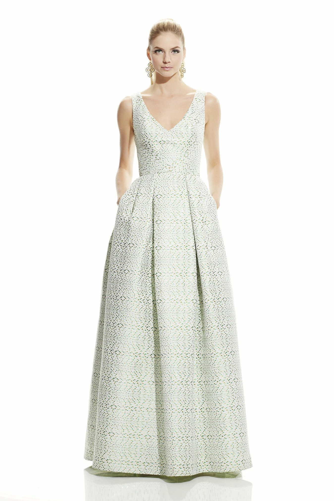 Sleeveless v-neck lurex woven pique ball gown, new perfect condition!! It has pockets!
