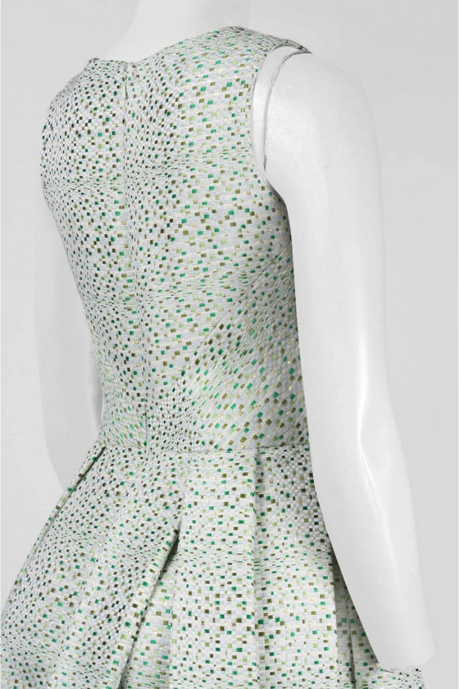 V-Neck Sleeveless Zipper Back Box Pleat Twill Dress. Lined. By Theia.